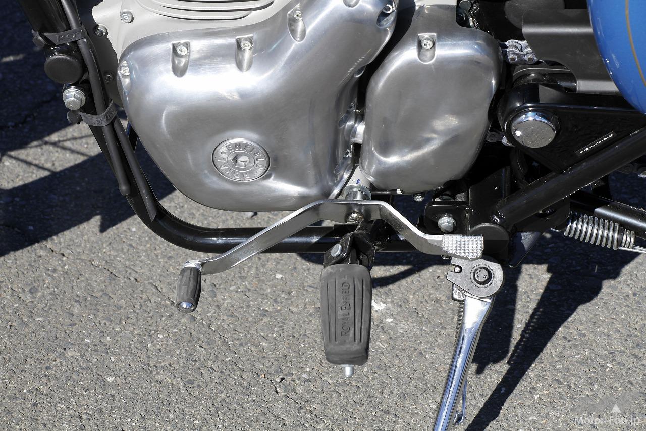 ここで改めてクラシック350を眺めてみます。鋼管製ダブルクレードルフレームに直立型空冷4ストローク単気筒の組み合わせは、それだけで60年代のバイクを彷彿させます。さらにタンクパッド装備のティアドロップタンク、ディープフェンダー、カバードタイプのフロントフォークなどがクラシックムードを高めています。車体を構成するパーツ一つひとつが美しく仕上げられ、個性を主張していて、結果的にそれらがまとまって存在感を高めているように思えます。