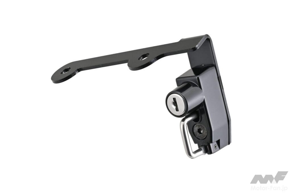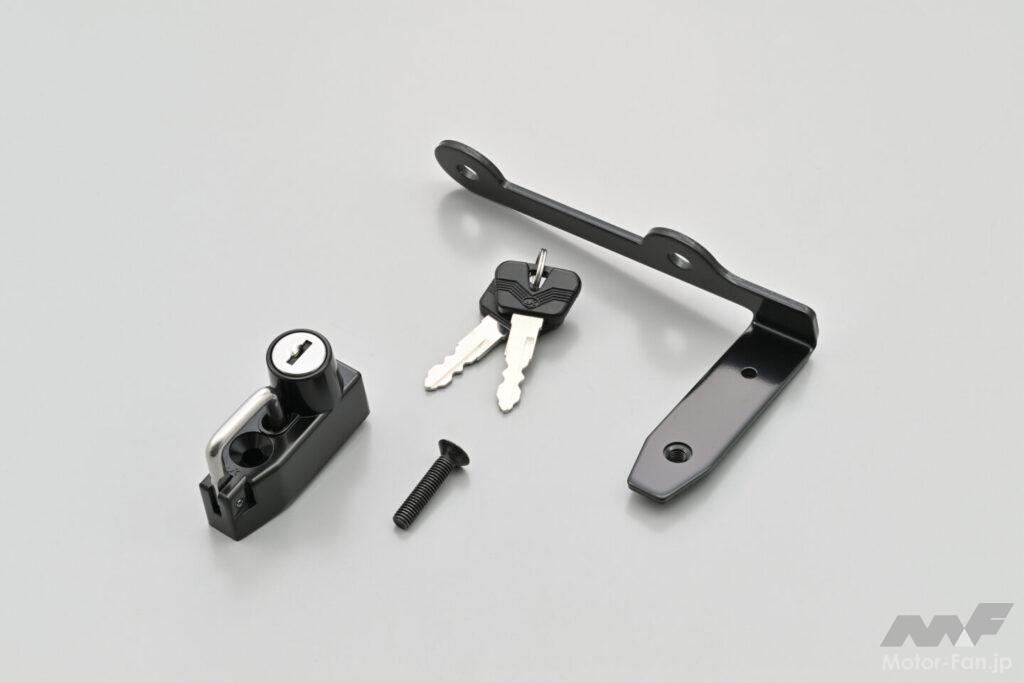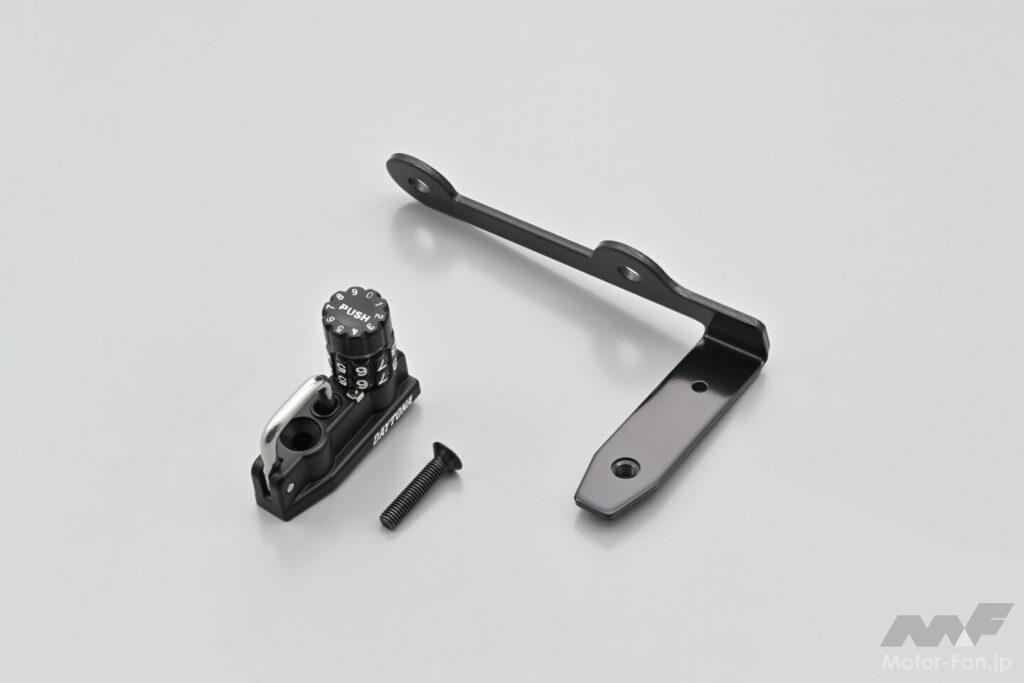 ダイヤル式なのでカギが増えないヘルメットホルダー。車種専用設計のため、ボルトオンで装着OK。解錠する数字は任意で変更可能。2ダイヤルロック式。