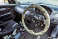 迷彩柄のロイヤルグリップ製ステアリングがアクセントとなったダッシュ周り。ボス部分にはクイックリリース機構も組み込まれ、気分によって別カラーのステアリングに交換している。