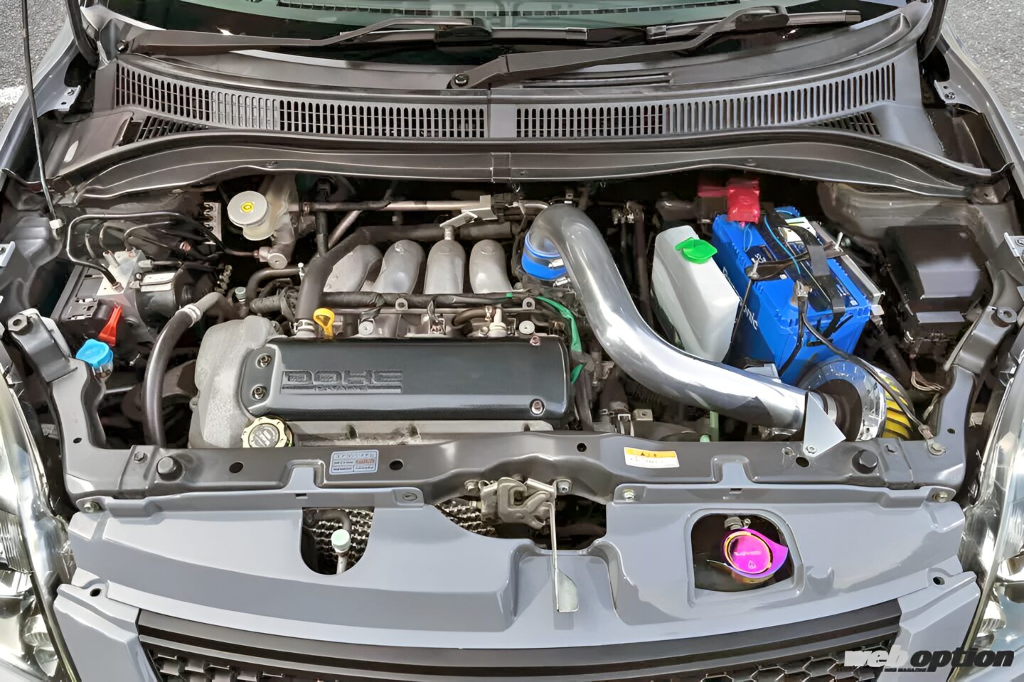 しかしある日、広島で催されたスイフトのオフ会で見かけたワイドフェンダー&ローダウン仕様に衝撃を受け、方向性を180度変更。俗にスタンスと呼ばれる、エッジの効いたストリートスタイルへのモディファイを決意したのだ。この手法において最重要視されるファクターは、いかに低く、そしてクールにホイールを履きこなすかという点。