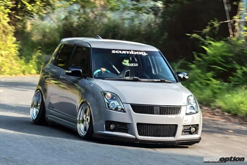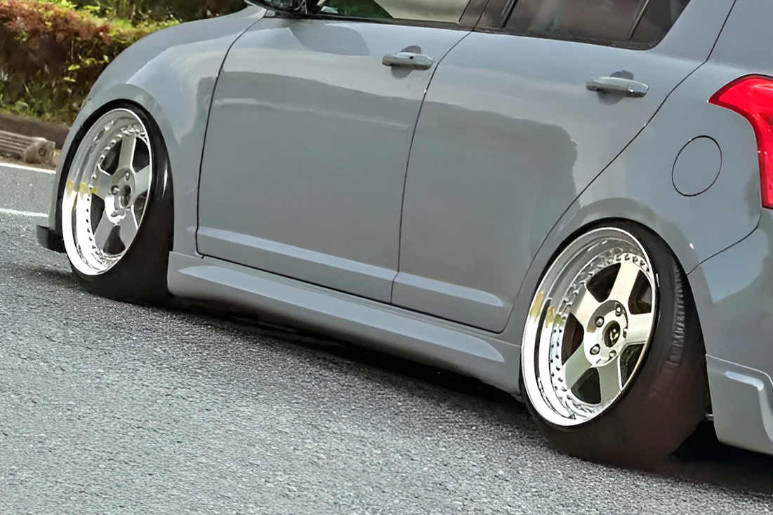 スイフトスポーツを楽しむための場所は、何もサーキットばかりではない。街乗りやイベント会場などで視線を惹きつけるような、ドレスアップ的要素を重視したモディファイもアリなのではないだろうか。そう強く感じさせてくれたのが、この極低スタイルのZC31Sだ。