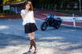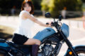 「やっぱりRebelってシンプルにかっこいいですよね。とくにこのSエディションにはヘッドライトカウルとか付いてて迫力満点! これやったら、後からドレスアップせんでも全然ええんちゃうかなって思います。カラーも可愛いけど甘すぎひんから、オトナ女子にも似合いますよね。もちろん男性が乗ってもステキですけど。あとわたし、Eクラッチは初めてやから、それも楽しみです!」