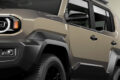 新車レビュー 愛称は「ランクルミニ」「FJ」!? カスタムパーツも充実しそうな、トヨタ・ランドクルーザーFJの発売が待ち遠しい!!【写真・5枚目】 スクエアなヘッドランプ(左)が標準で、丸目(右)は、カスタマイズ仕様となる。直角のボディに角を注ぎ落としたデザインとすることでカジュアルな雰囲気を演出。 アウトドア用品などを取り付けられるモールパネル、オフロードスタイルを演出するオプションを追加予定。なお、メインカットの折りたたみの小径電動自動車「LAND HOPPER」は開発中で、発売は未定。 この画像の記事を読む