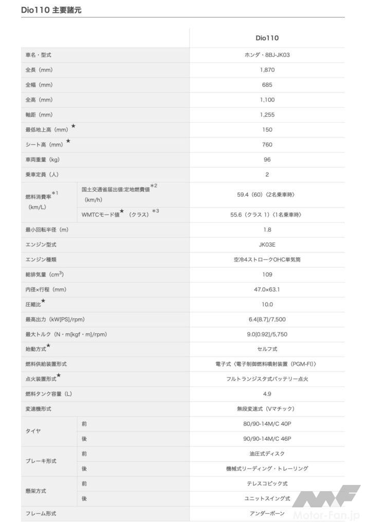 「Dio110シリーズ」は、スタイリッシュなデザインと優れた実用性で、幅広いユーザーから支持を得ている。今回のカラーリング変更により、さらに多様なニーズに応えるラインアップとなった。