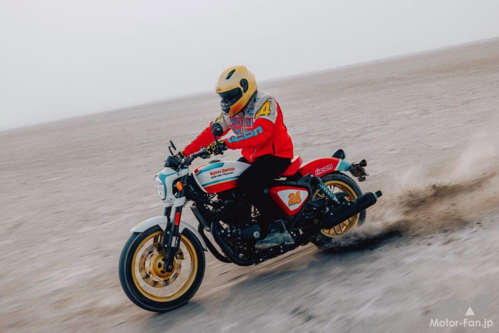 このコラボレーションは、ロイヤルエンフィールドが自らの伝統を継承しながら、世界中のカスタムを愛するコミュニティの育成に力を注ぐという揺るぎないコミットメントを一層強化するものとなっている。さらにアイコン・モータースポーツがデザインした特別仕様の「スラブタウン インターセプト・ロイヤルエンフィールドジャケット」が特典として含まれている。この限定ジャケットは、スエードとテキスタイルで構成され、レザーアップリケと刺繍が施されており、オーナーの心を魅了する仕上がりとなっている。