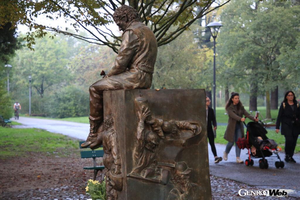 モニュメント周辺は公園として整備されており、訪れた時間にはベビーカーを押す家族連れが散歩する姿も見られた。その像は一見寂しげだが、台座に彫られたセナの在りし日の姿──マシンのコクピットで格闘する姿や、表彰台でのシャンパンファイト──が、往時のレースでの輝きを鮮明に思い起こさせてくれた。やはり来てよかった。モータースポーツは危険だが、多くの人の心にこれほど刻むパワーを持っていると再確認できた。イモラを訪れたら、ぜひ立ち寄っていただきたい、あの事故から30年目に知った、F1の聖地だ。