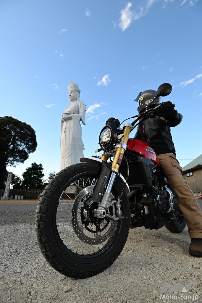 というわけで、スポーツスターから現代のバイクに乗り換えた2人は大絶賛である。念のために気になる点を聞いてみると、清本さんはシングルディスクのフロントブレーキに物足りなさ、池野上さんはウインカースイッチの曖昧なタッチに違和感を覚えたようだが、そのあたりはあえて言えばの話で、2人ともキャバレロ・スクランブラー700の資質に大いに心を動かされたようだ。