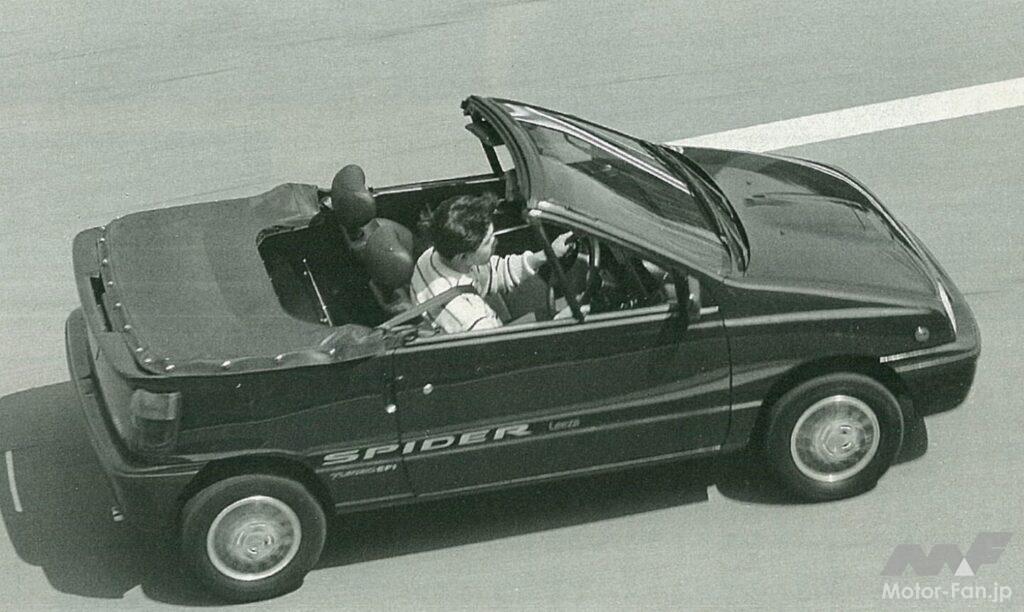 対抗してダイハツは、リーザのスポーツグレードTR-ZZをベースにオープンボディ化した「リーザスパイダー」を1991年11月に投入。オープン化にあたっては、帆の収納やボディ剛性の確保を考慮して2シーターとなった。さらに、1990年の軽新規格(排気量660cc化、全長100mm拡大)に準じて仕立てられた。