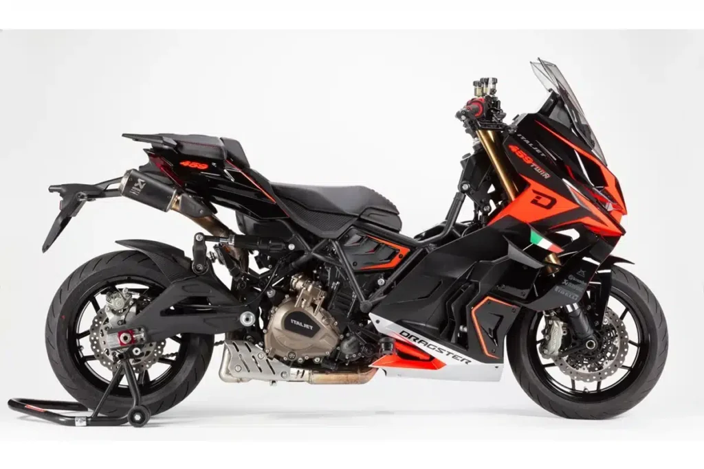 同車はEICMA 2024で発表され、後に市販化された前後15インチホイールを採用した水冷4ストローク2気筒700ccエンジン搭載のモンスターマシン・DRAGSTER 700 TWIN(ドラッグスター700ツイン)の血統を受け継ぐ本格派スポーツモデルに仕上げている。