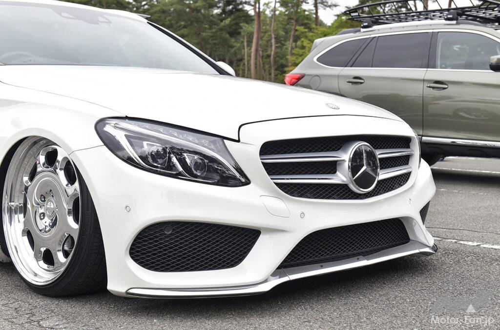 AMGラインだからそのままでもオシャレなCクラスワゴン。だから外装はあまり手を加えず、足元を中心にカスタマイズ。エアリフトで制御したプルームのエアサスで落としているが、リムにチョイ被るくらいのダウン量で大人っぽいツラウチセッティングが見どころ。ホイールはアメリカ製の鍛造モデル、ニュートレイル·ヘリテイジエイト。メルセデスの純正にありそうなディッシュデザインに惚れ、装着してみたらイメージ通りのマッチングに大満足。カラーはピカピカに磨かれたフルポリッシュ。ボディカラーとの相性もバッチリ。