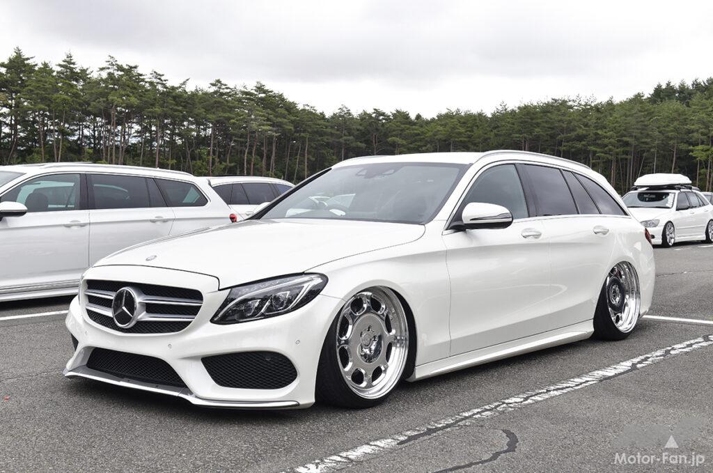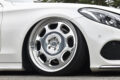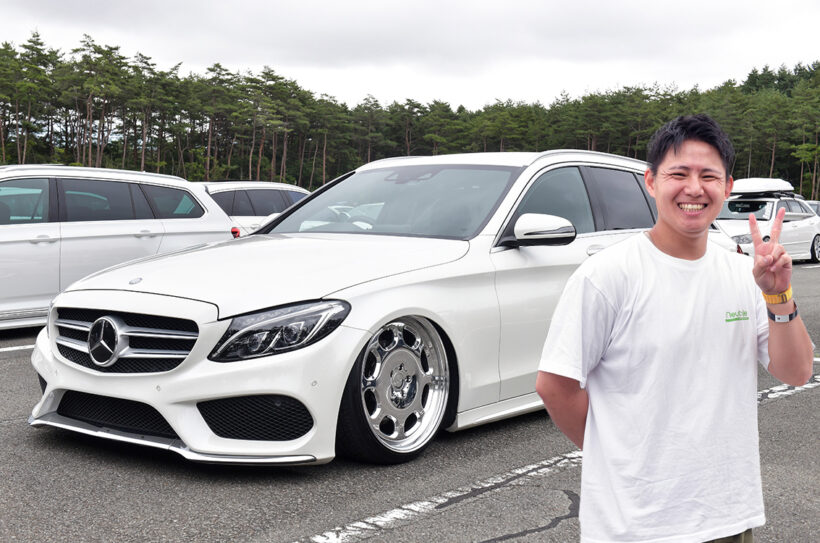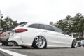 AMGラインだからそのままでもオシャレなCクラスワゴン。だから外装はあまり手を加えず、足元を中心にカスタマイズ。エアリフトで制御したプルームのエアサスで落としているが、リムにチョイ被るくらいのダウン量で大人っぽいツラウチセッティングが見どころ。ホイールはアメリカ製の鍛造モデル、ニュートレイル·ヘリテイジエイト。メルセデスの純正にありそうなディッシュデザインに惚れ、装着してみたらイメージ通りのマッチングに大満足。カラーはピカピカに磨かれたフルポリッシュ。ボディカラーとの相性もバッチリ。