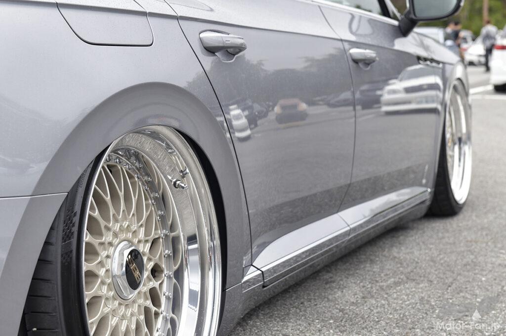 フロントバンパーはナンバーレスでシンプルに。自然すぎるフェンダーのワイド加工! 『アテンザワゴン』が履くホイールはリムの深さも別格