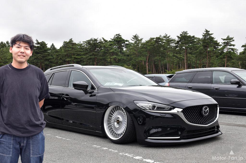 フロントバンパーはナンバーレスでシンプルに。自然すぎるフェンダーのワイド加工! 『アテンザワゴン』が履くホイールはリムの深さも別格