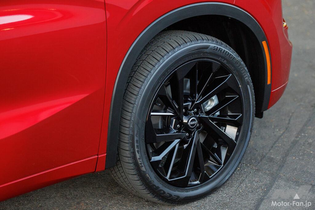システムトータルでは251ps/450Nmを発揮し、加速性能はガソリンモデルの「ローグ」を凌ぐ。インテリジェントAWDが全車標準となり、7つのドライブモード(ノーマル、パワー、エコ、ターマック、グラベル、スノー、マッド)を備え、シーンに合わせてパワーとAWDトルク配分を最適化する。バッテリーの充電は、レベル2の家庭用充電設備により約7.5時間で満充電することが可能だ。