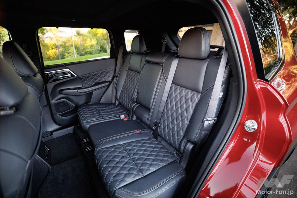 キャビンや荷室の使い勝手も良好だ。2列目シートはスライド、リクライニング、前倒しが可能。3列目へのアクセスが容易な7人乗りの3列シートを設定し、レジャーやファミリーユースを想定した設計となっている。3列目シート格納時にはゴルフバック4個を収納でき、背の高い室内によってマウンテンバイクも楽に積載可能。パワーテールゲートは標準装備だ。リヤドアは70度まで開き、乗降性を向上させるとともにチャイルドシートの積み込みも容易となっている。