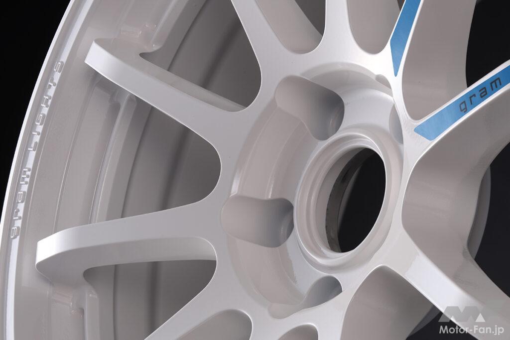 その最新版がレイズの誇るスポーツホイールブランド、グラムライツにおいて、王道Rシリーズの最強モデルとして展開されている57NRをベースとした1本。既存モデルに採用されるのはダークブロンズ、グラスブラックというトーンを抑えたマッシブな色味だが、マルゼンのリミテッドエディションではスポーツテイスト満点なホワイトを設定した。