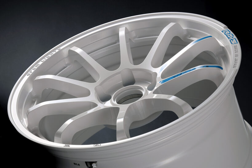 その最新版がレイズの誇るスポーツホイールブランド、グラムライツにおいて、王道Rシリーズの最強モデルとして展開されている57NRをベースとした1本。既存モデルに採用されるのはダークブロンズ、グラスブラックというトーンを抑えたマッシブな色味だが、マルゼンのリミテッドエディションではスポーツテイスト満点なホワイトを設定した。