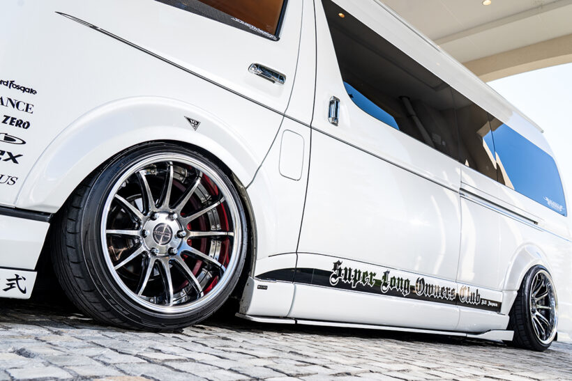 カスタム ハイドロシステムは低さを叶えるだけじゃない⁉︎ 『ハイエース』の不満点=乗り心地を大きく改善!!【写真・1枚目】 ハイドロ取り付けの依頼は店頭でのみの対応となる。また、車検やメンテナンスからエアロ取り付けまで、トータルのカスタマイズも請け負うカスタムショップだ!住所:群馬県前橋市西片貝町 2-391-5 営業時間:10:00~19:00 定休日:月曜日 走行車高 MAX UP 【下げ速度調整バルブ】車高を下げる時の速度を調整するバルブ。赤のダイヤルを回すことで、好みの塩梅へ調整することが可能だ。 【上げ速度調整バルブ】下げ速度調整バルブと反対の位置に設置しているのが上げ速度調整バルブ。こちらも回すことで調整できる。 【減衰調整バルブ】ユニット上部に設置されているダイヤル操作で減衰調整を行う。この操作は車高調などと同様だ。 【アキュームレーター】バネ式サスペンションでいうところのバネ部分に該当するのがこの箇所。内部には窒素が充填されているぞ。 【モーター&ポンプ部】システムの心臓部と言えるのがこの部分。シェイカーズ独自開発により、圧力を均等に配分させることが可能。 4リンク加工 Cノッチ加工 OWNER 銀さん この画像の記事を読む