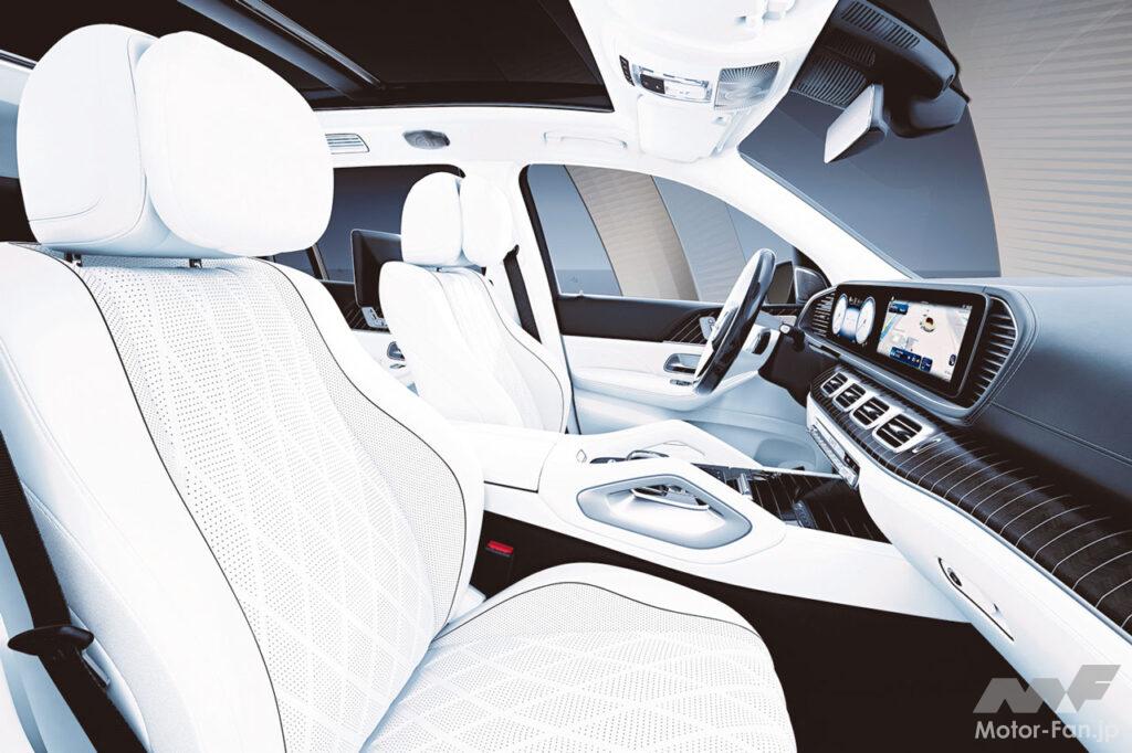 インテリアは、オールブラックのエクステリアとのコントラストが美しい限定装備の「本革(MANUFAKTUR ナッパレザー)シート[クリスタルホワイト/ブラックパール]」によって、インテリア全体が明るく華やかな空間となり、すべての乗員に上質で洗練された時間を提供する。