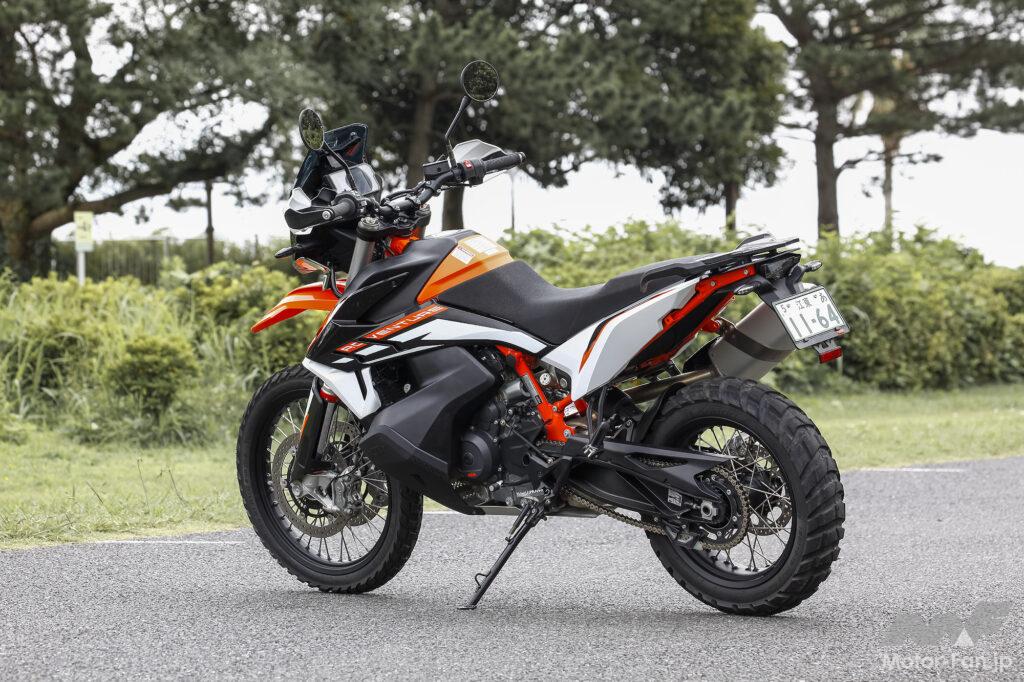 より競技車然としたキャラクターの690アドベンチャー(単気筒エンジン)は146kgだから、流石にそのレベルではないが、大柄な車体サイズを持つミドルクラスのアドベンチャー系として、890の196kgは十分に魅力的である。