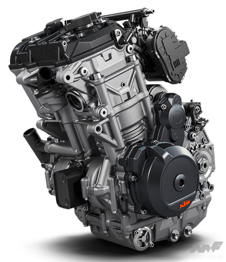 いずれもショートストロークタイプで、ボア・ストローク比は、790と大差無いレベルだが、890の方が若干ながらスクエアに近付けられた。さらに75度位相クランクのマスが20%重くなったのも見逃せないところ。