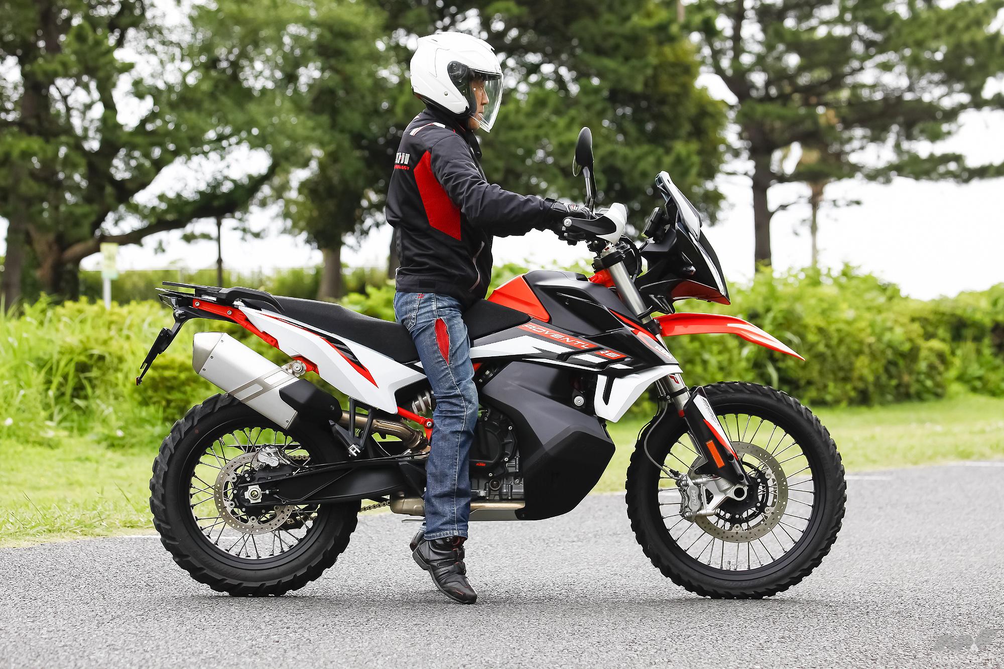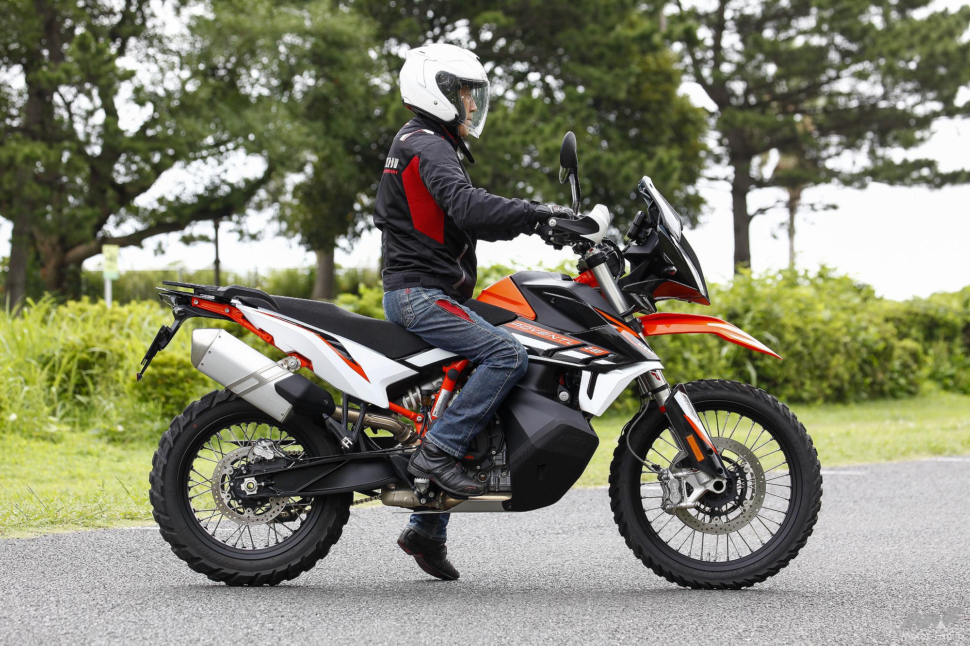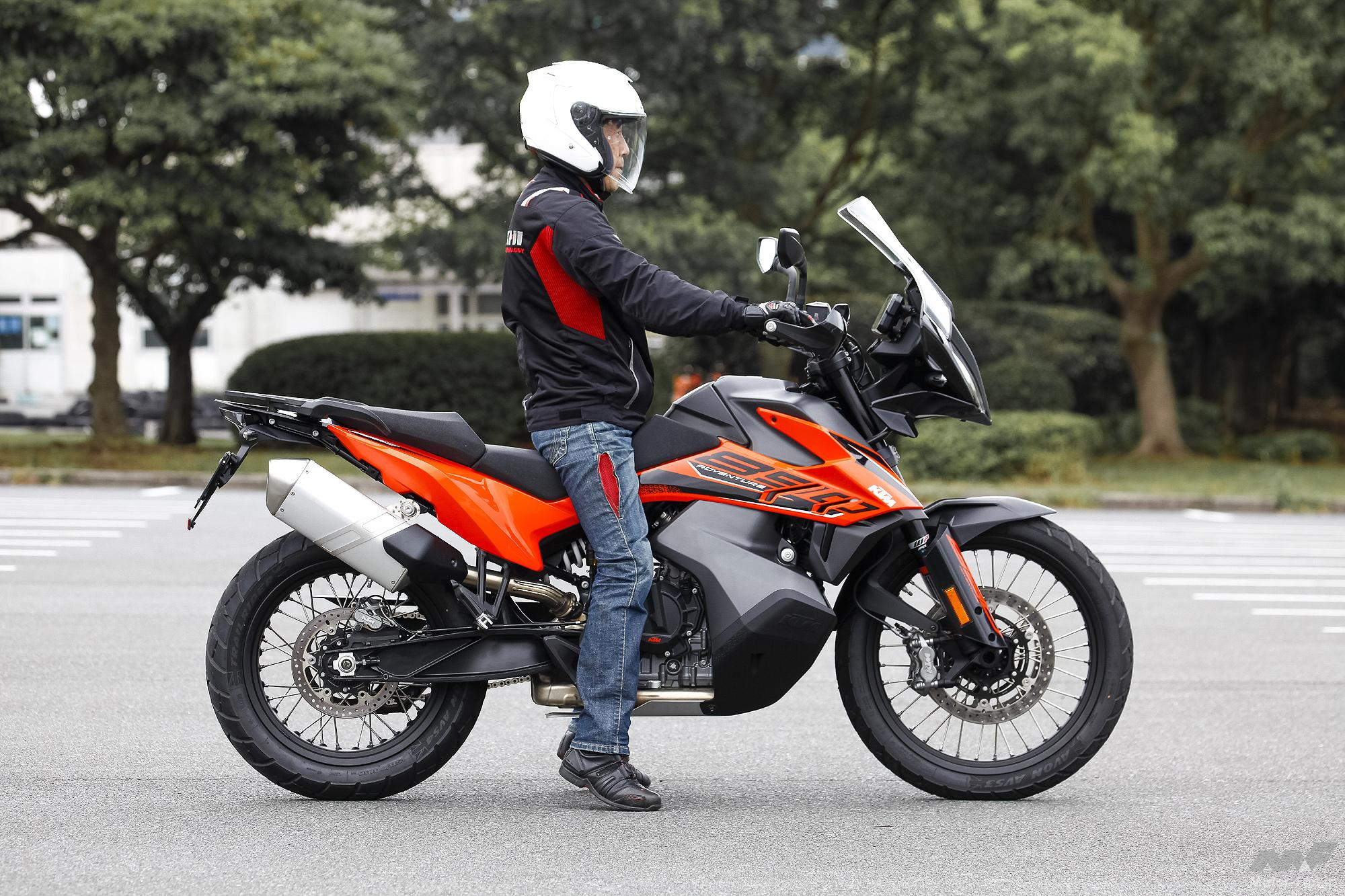 ただシート高は880mm。アドベンチャーは830mm。その50mm差は大きく、背筋や足の関節をピンと精一杯伸ばしてギリギリの爪先立ち。足つき性チェックの写真をご覧頂ければ理解は早いだろう。