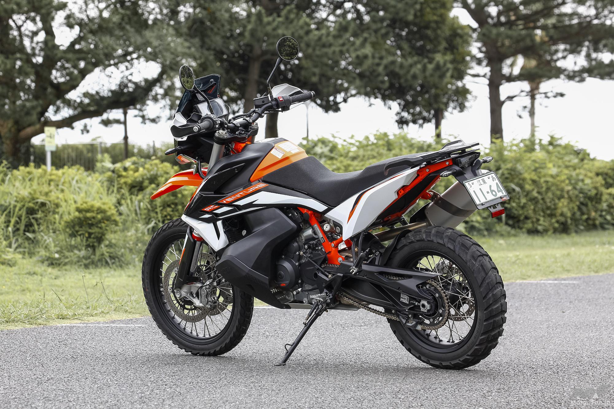その足の長さ故、ロードクリアランスやシート高は高くなっており、本格的なホフロード走行でより高いパフォーマンスを発揮できる仕様となっている。