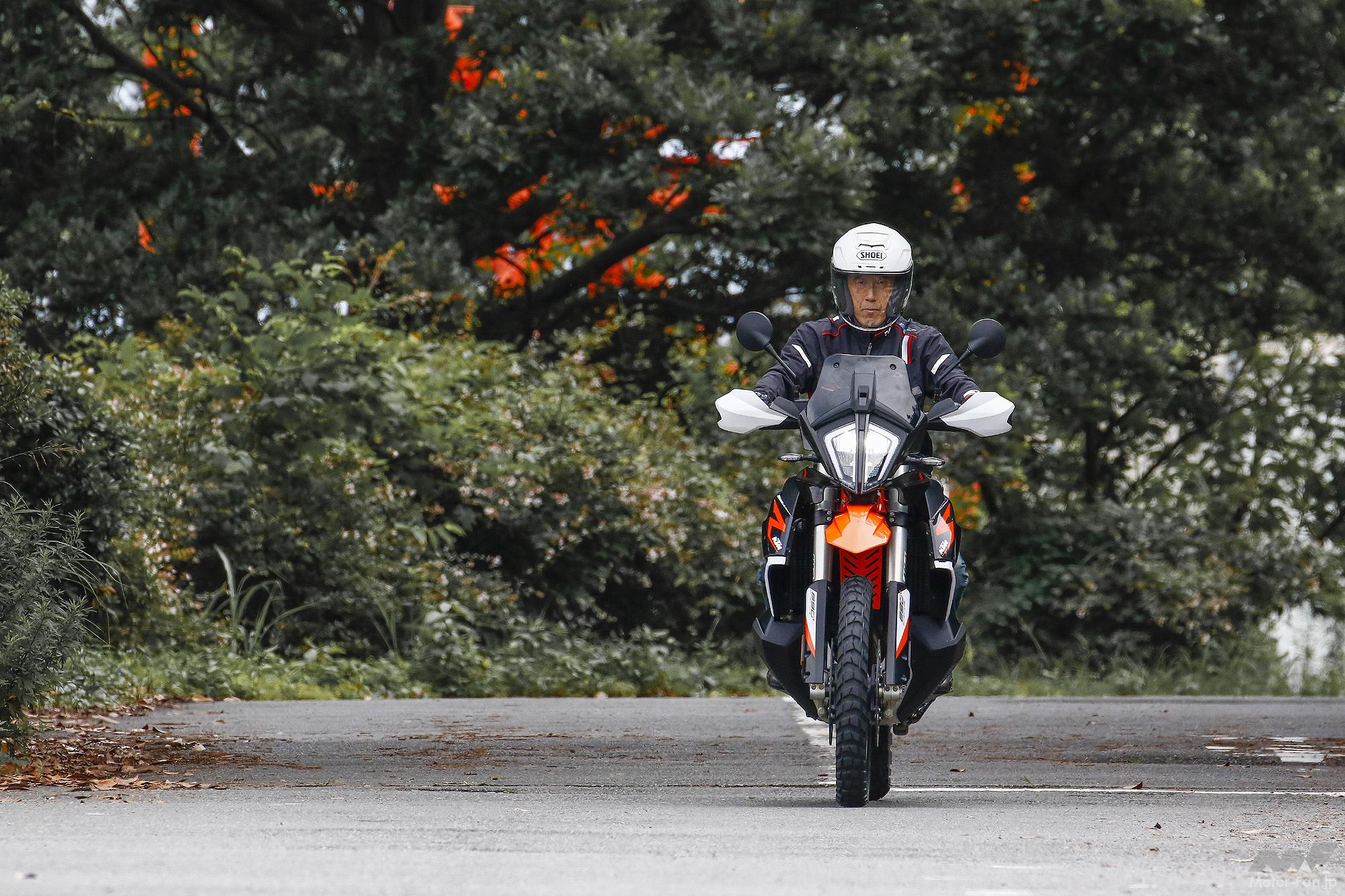 試乗車を目前にした時、一度遠巻きに眺めてしまった。やはり“大きいなあ”と言うのが正直な第一印象。ミドルクラスとは言え、そのスケールの雄大さは1290のトップモデルに匹敵するレベルに感じられた。