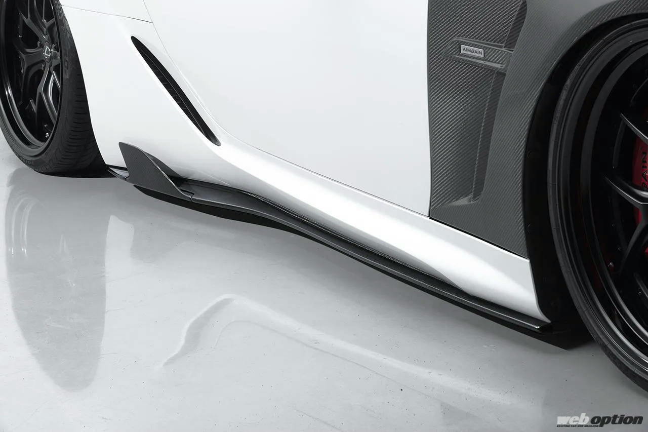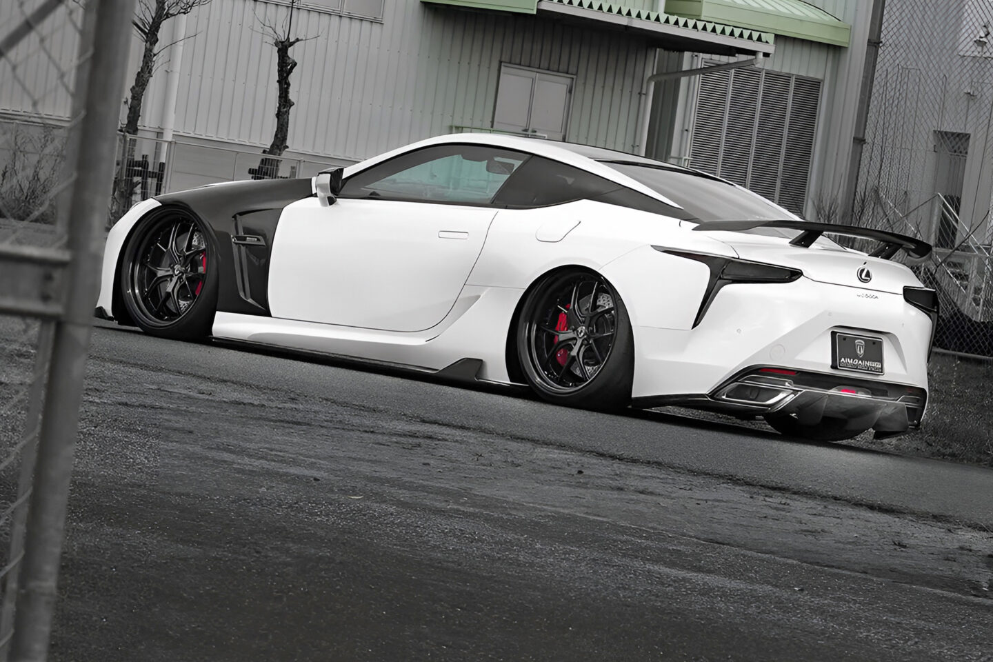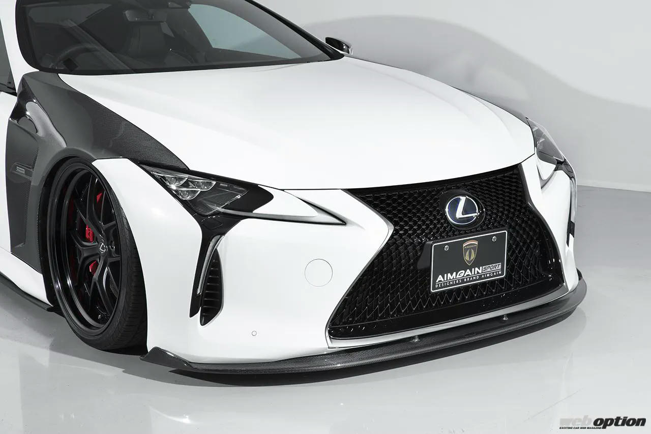 ハイパフォーマンスなクーペでありながら、セダンのように上質な落ち着きを放つレクサスLC。そうした車格へ配慮し、ハイエンドエアロパーツメーカー“エイムゲイン”は、随所にシンプルなアクセントを散りばめるセダン的アプローチで独自のドレスアップを完成させた。