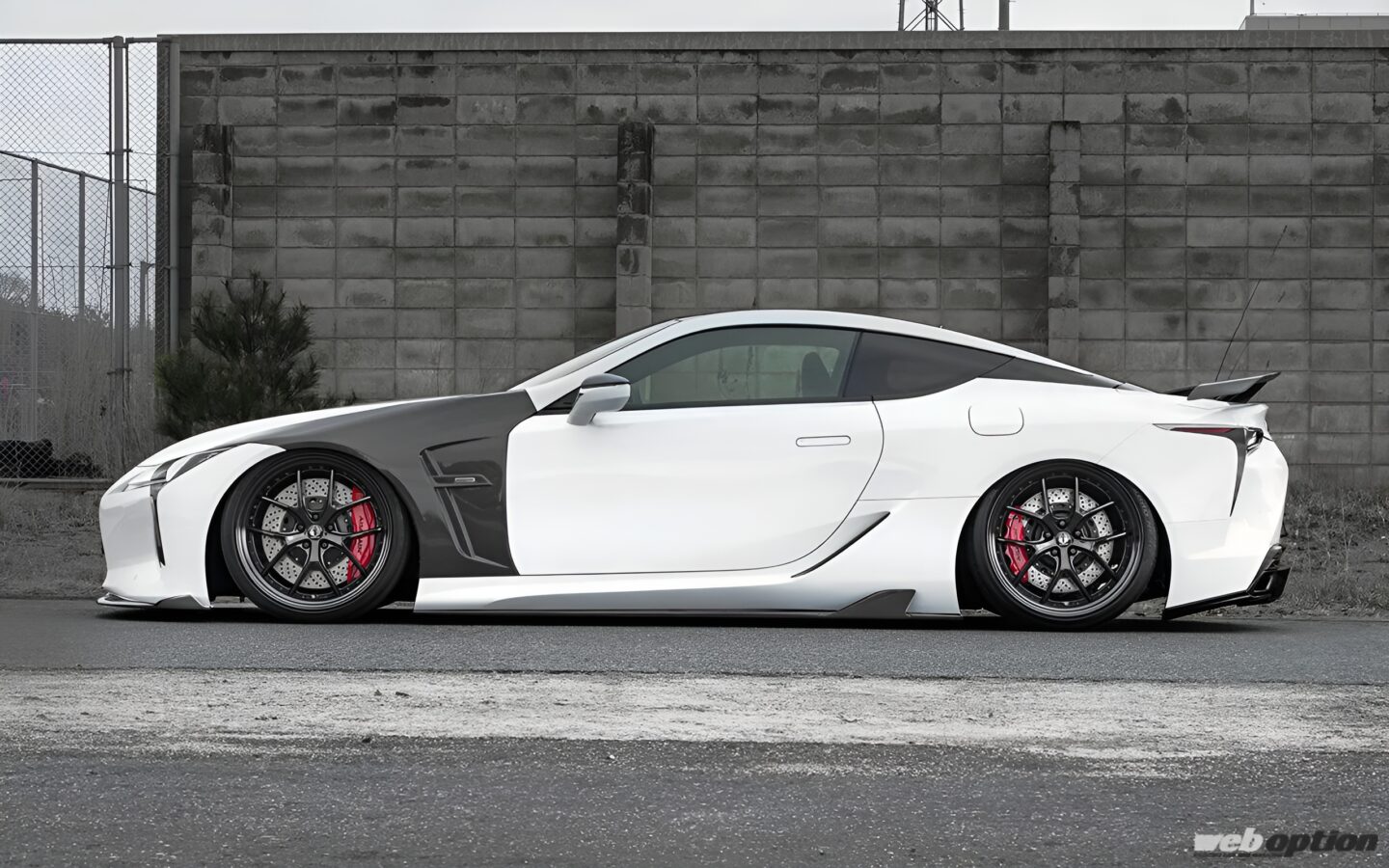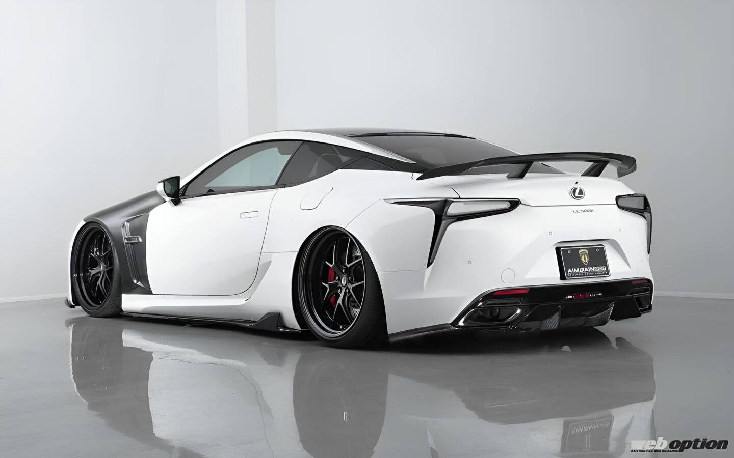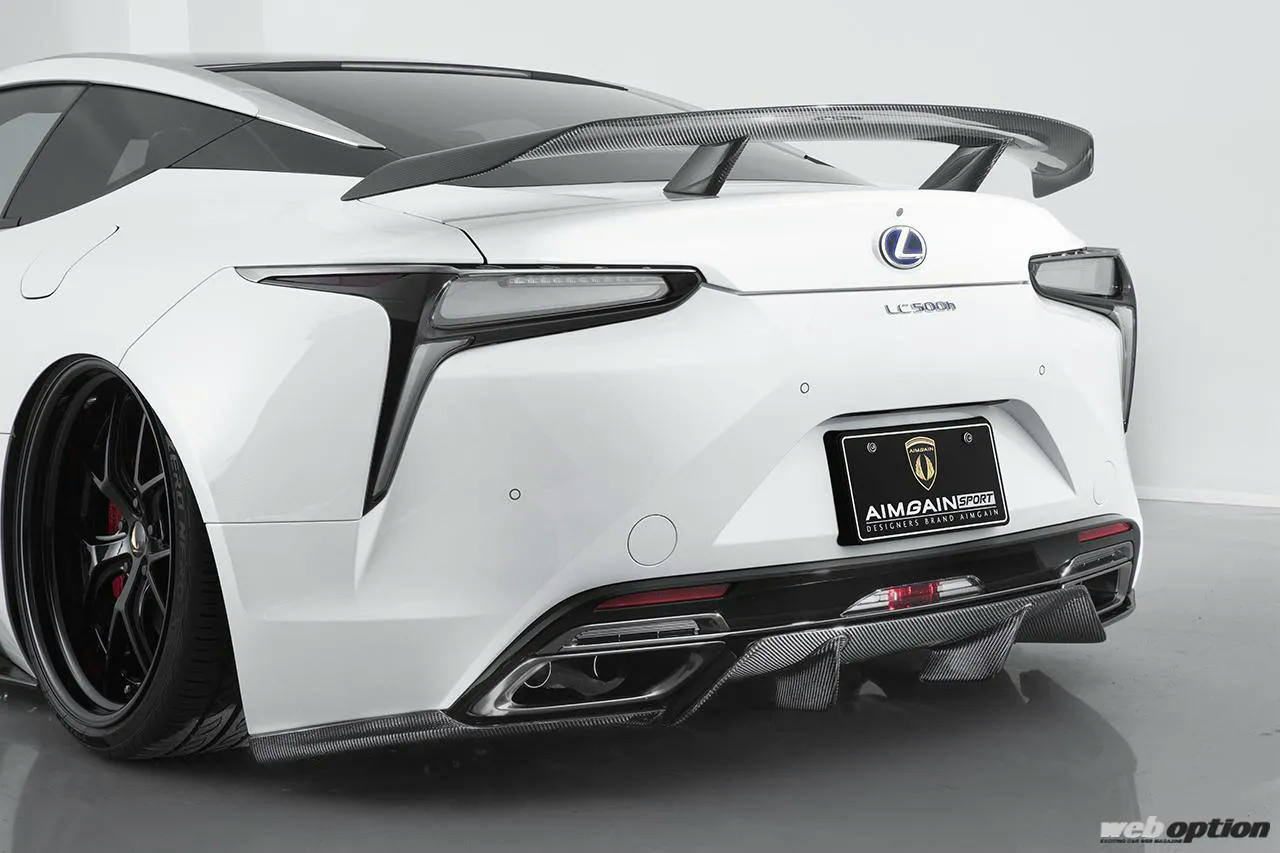 ハイパフォーマンスなクーペでありながら、セダンのように上質な落ち着きを放つレクサスLC。そうした車格へ配慮し、ハイエンドエアロパーツメーカー“エイムゲイン”は、随所にシンプルなアクセントを散りばめるセダン的アプローチで独自のドレスアップを完成させた。