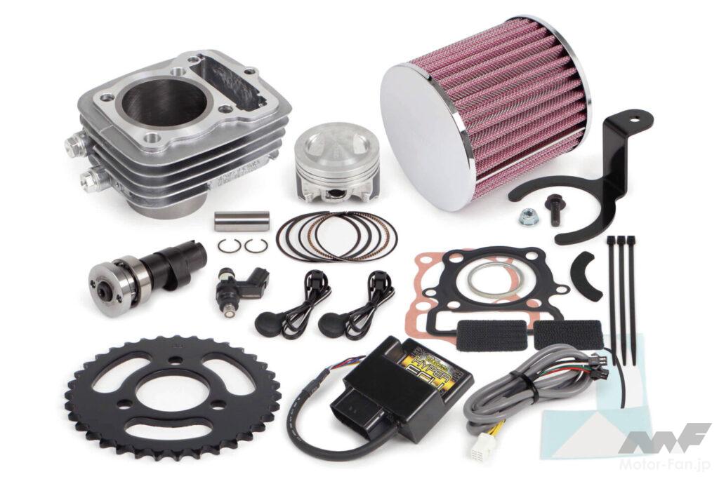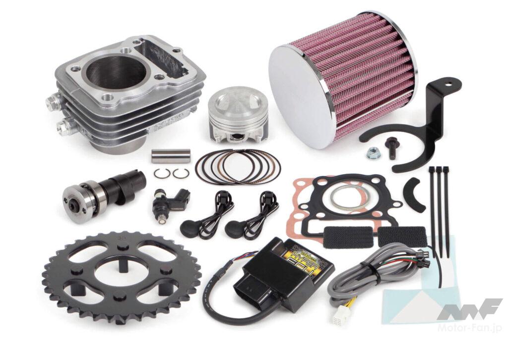 シリンダーとピストンの変更で、排気量をノーマルの49ccから80ccに変更できる、FI車(フューエルインジェクション仕様車)専用のボアアップキット。