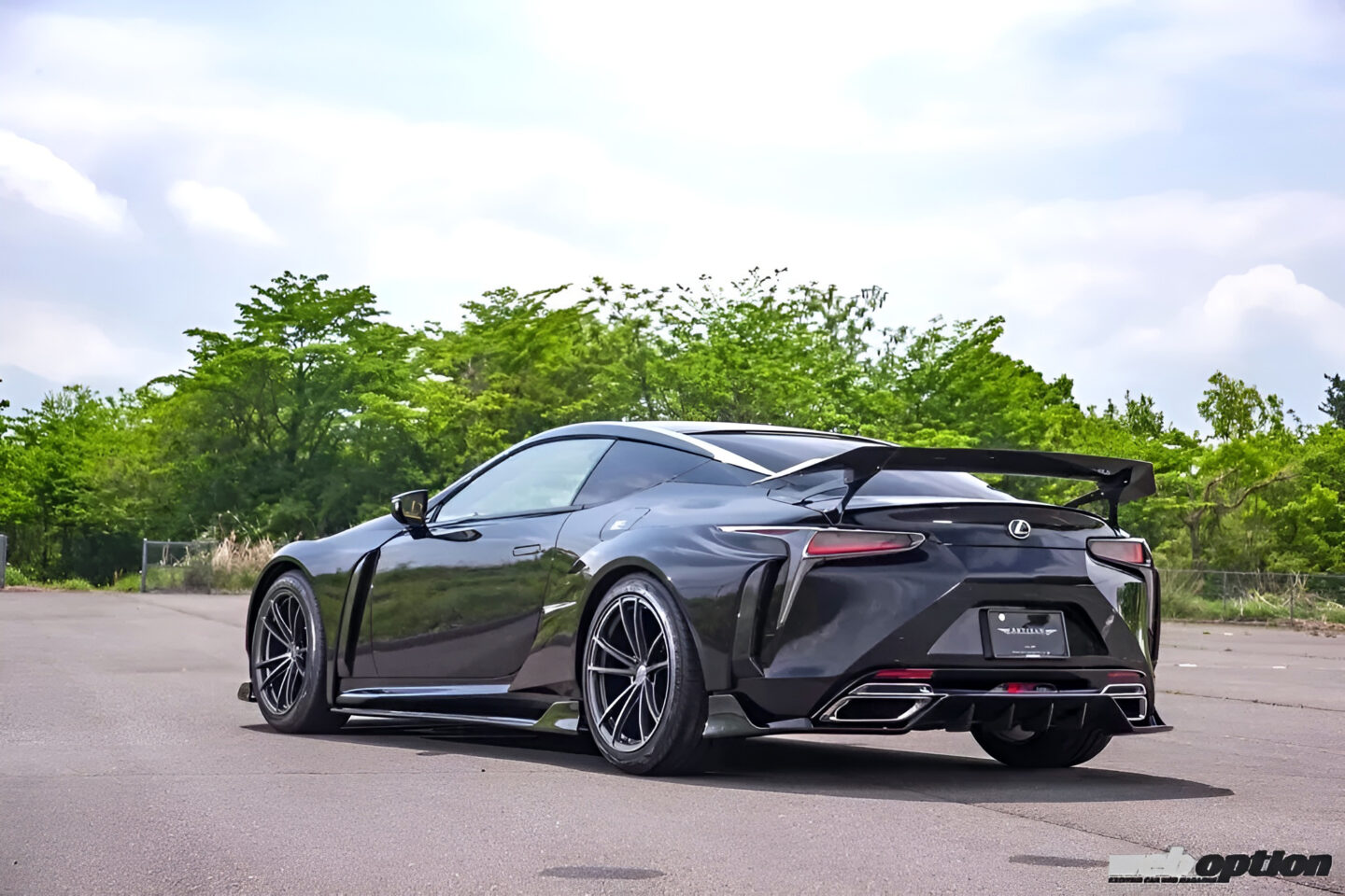 また、イメージに合わせたスタイリング作りに欠かせないエアロパーツではあるが、ボディメイクだけでなくより本質的な空力も味方につけることも重要。その考えから、GTウイングはボルテックスと共同開発を行なうカーボン仕様(37万5000円)をラインナップ。LC純正の可変ウイングの動作も妨げないよう、ステーは専用設計で製作されている。
