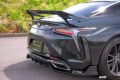 また、イメージに合わせたスタイリング作りに欠かせないエアロパーツではあるが、ボディメイクだけでなくより本質的な空力も味方につけることも重要。その考えから、GTウイングはボルテックスと共同開発を行なうカーボン仕様(37万5000円)をラインナップ。LC純正の可変ウイングの動作も妨げないよう、ステーは専用設計で製作されている。