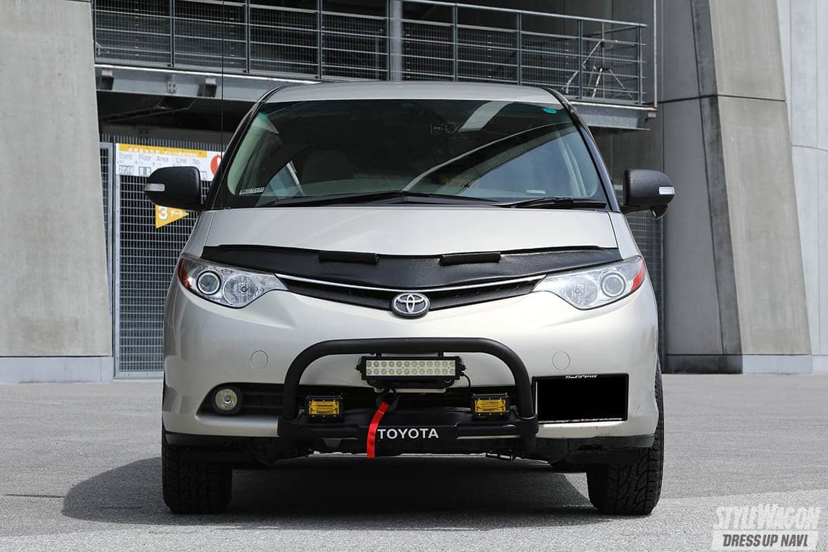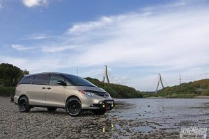 ●オーナーさん_「エスティマでアゲ? と驚く方も多いですが、車高が上がった分、川原やオフロードを走ったりもできるので楽しいですよ」。