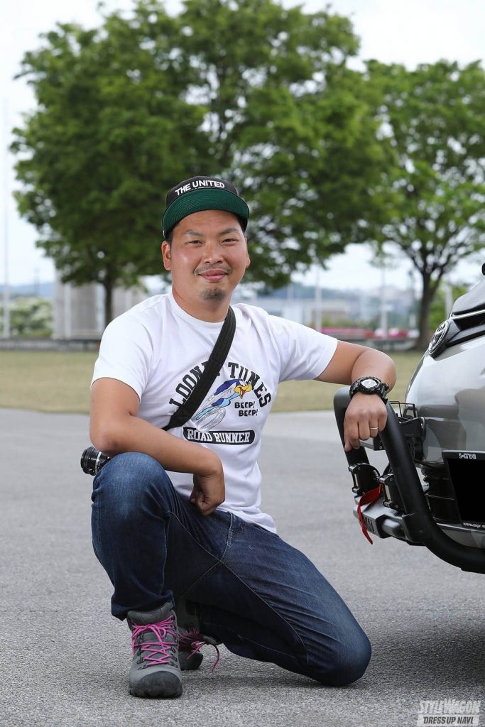 ワンモーションフォルム重視でルーフキャリアは付けずにリアにヒッチキャリアを装着。家族でキャンプに行く時にはキャンプ道具を満載する。