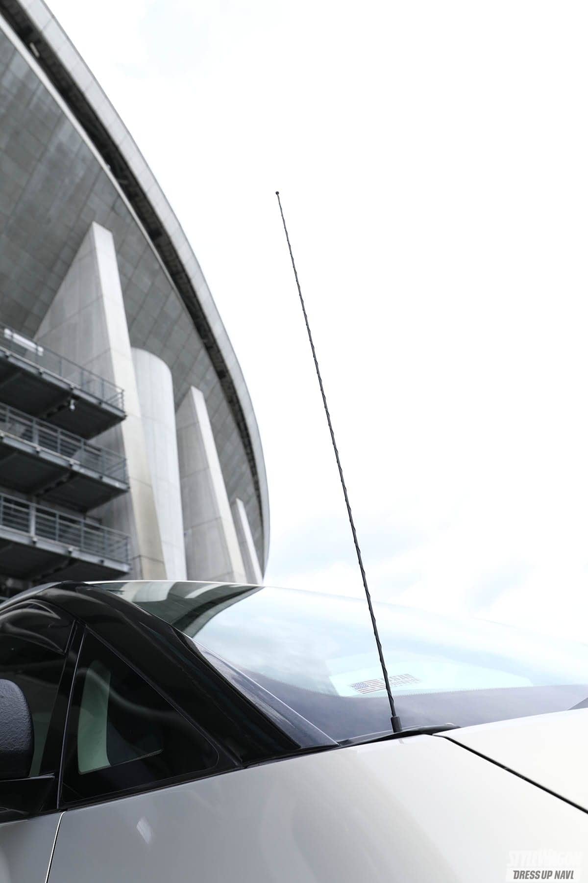 ブラックポールにコイルを巻き付けたラジオアンテナは、USトヨタ純正。US感をアップさせるダミーアンテナだ。
