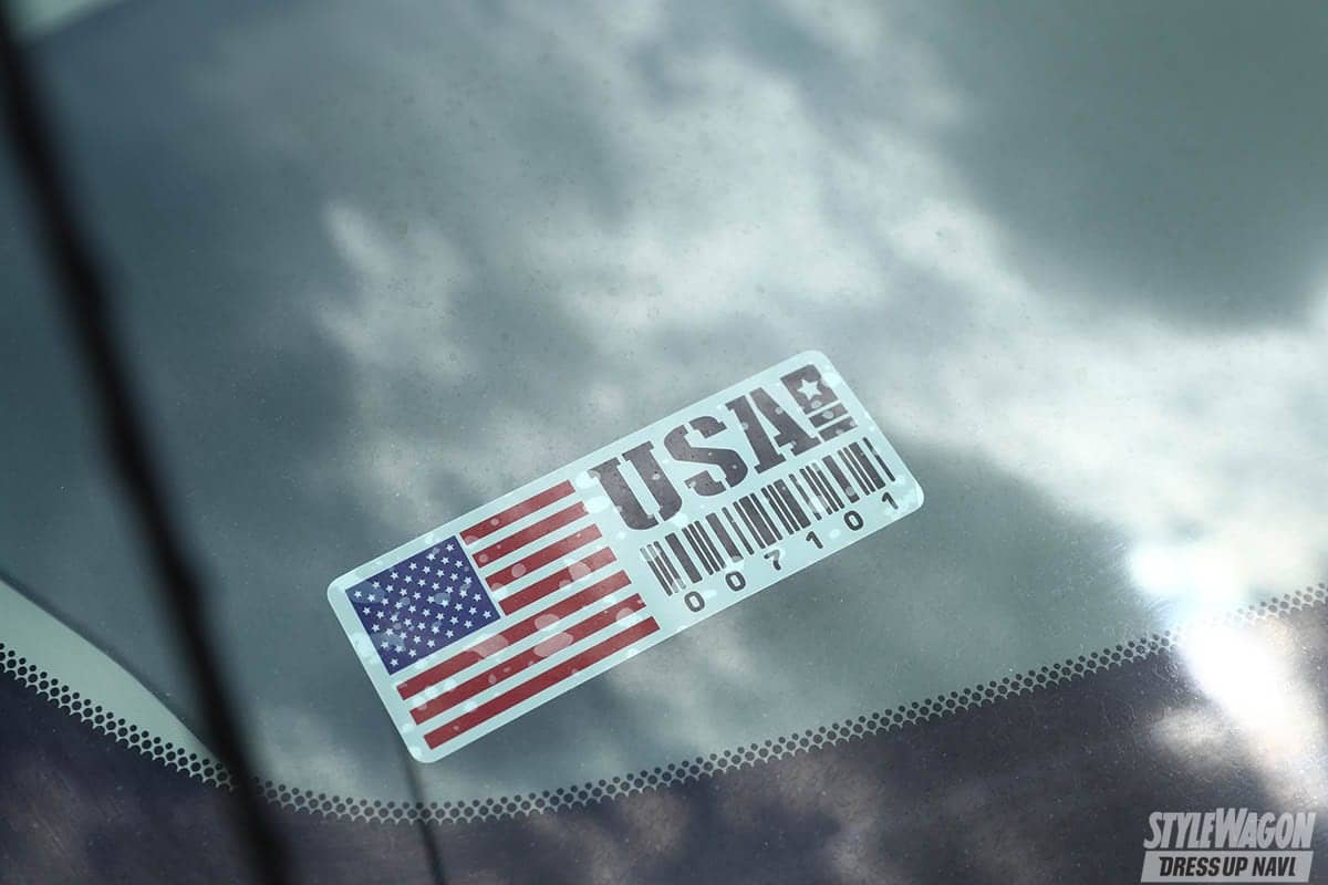 USカスタム感を出すためのアイデアは至る所に。ステッカーなどの小物にもしっかりと気を配ってチョイスしている。