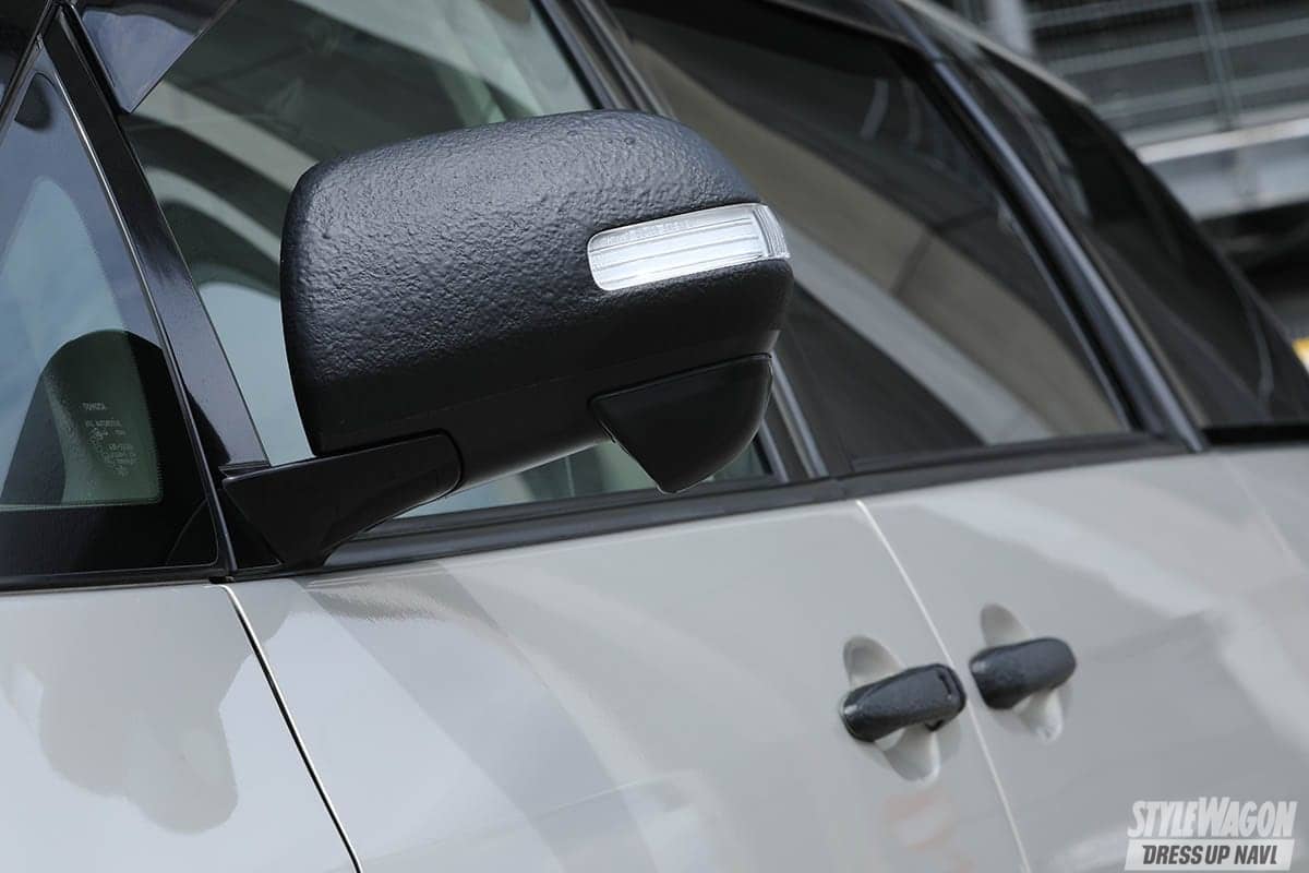 ドアミラーのほか、ブルバー、フロントグリル、ドアハンドル、リアガニーッシュはすべてマットブラックのチッピング塗装。