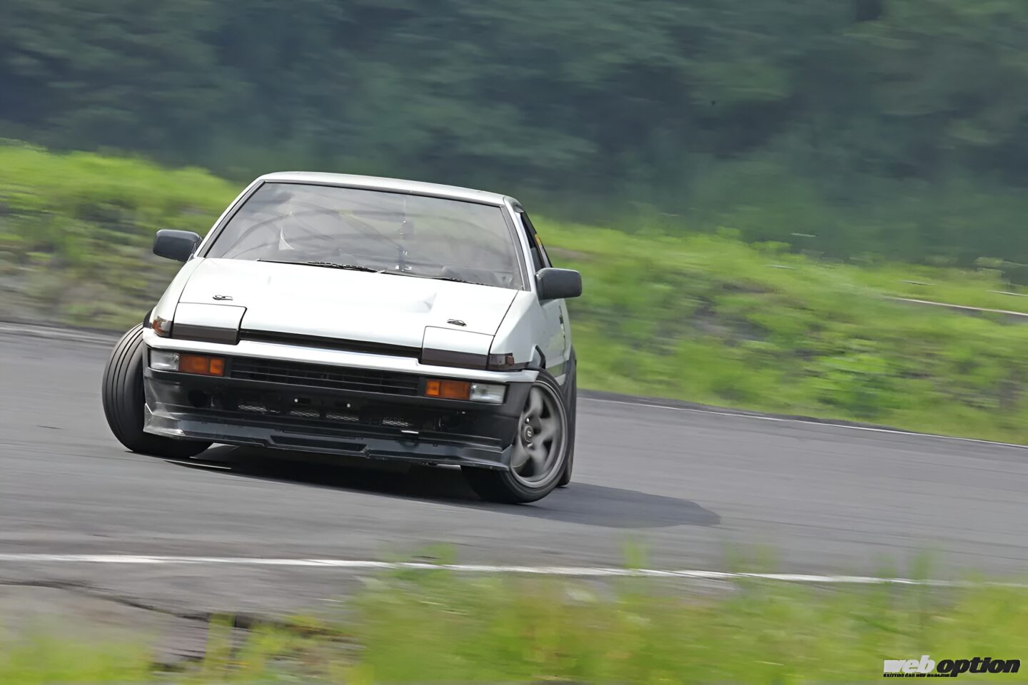 SR20DETとシルビアのマルチリンクを移植し、大幅に戦闘力が増したパンダトレノ。シルビア勢に負けない角度とスピードでサーキットを縦横無尽に滑走する姿を見れば、異端ながら説得力のあるチューニングだということが分かるだろう。