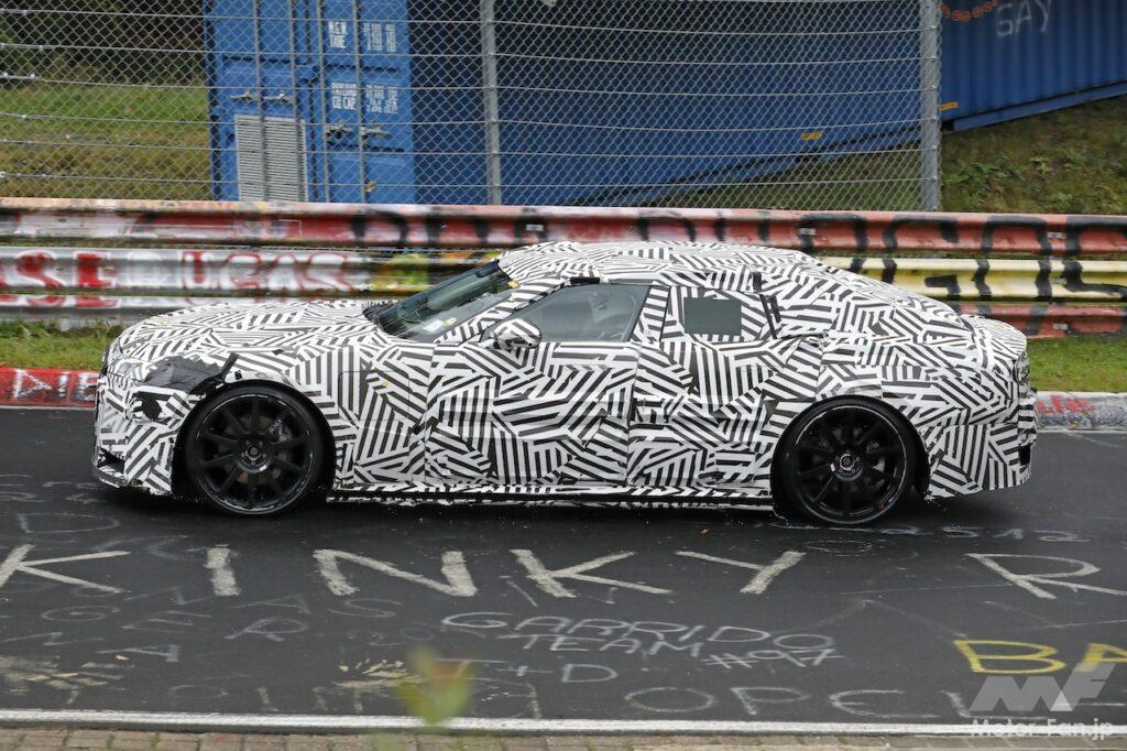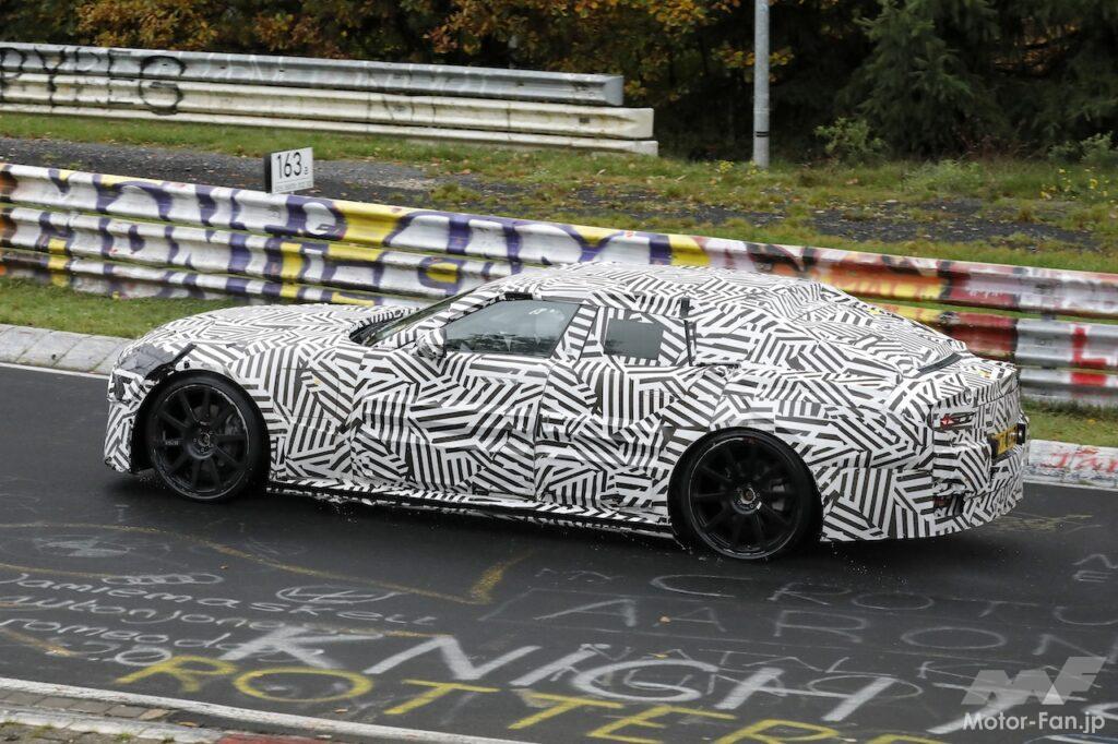 最新の写真ではフロントエアインテークがより鮮明に映し出されている。また、コンセプトカーよりも大幅に大型化された市販モデルのヘッドライトも確認できる。