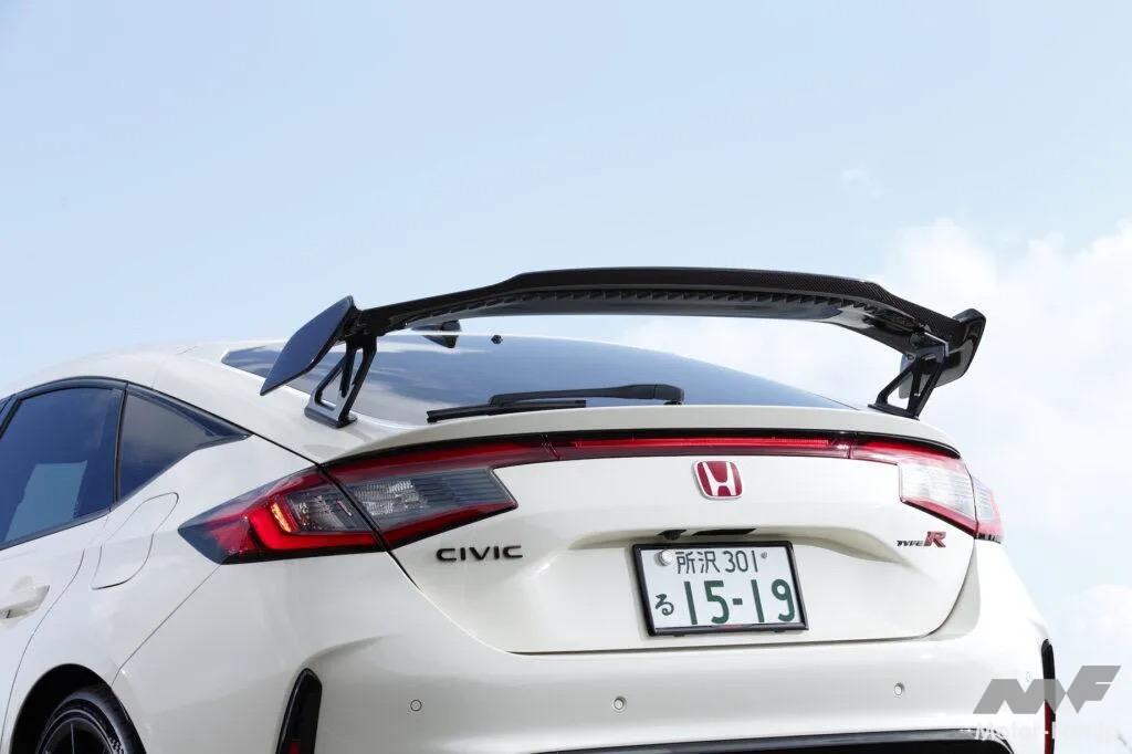 最新のシビックタイプR用テールゲートスポイラーにおいて、実効空力は新しい知見を得たという。それが鋸歯(シェブロン)形状の「実効空力デバイス」と名付けられた形状である。