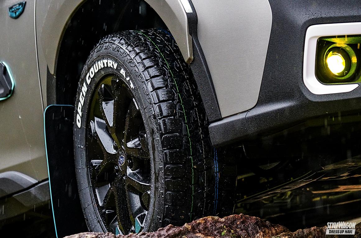 A/T Ⅲは街乗りがメインとなるため、静粛性や乗り心地を追求。ノイズ低減を重視したパターンを採用し、オフロードタイヤにありがちな騒音も気にならない。さらにオールテレーンでありながら、マッドテレーンを彷彿とさせる力強いパターンデザインを採用。大きなブロックをバランス良く配置したことで一般道での操縦安定性と快適性を向上。週末などたまにオフロードを走る際も安定した走りを可能とし、どんなシーンでも安心して走れるのが最大の魅力。スバルがコンセプトモデルとして手がけたアウトバック・ブーストギアパッケージにも装着しているが、このアクティブなスタイルとの親和性も非常に高い。