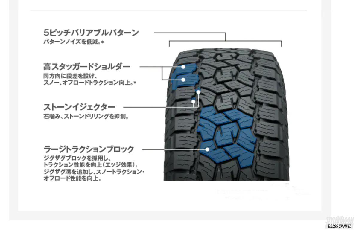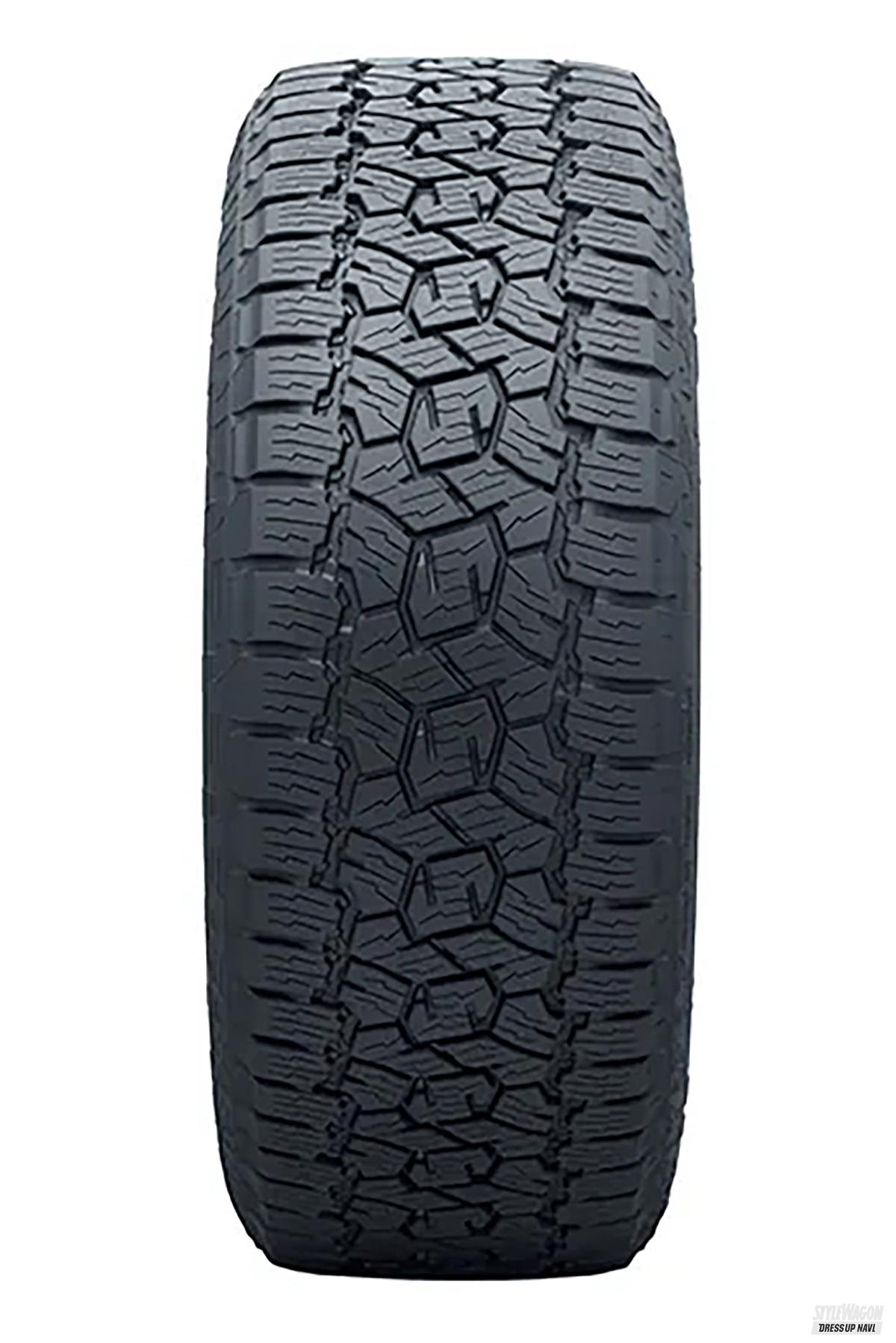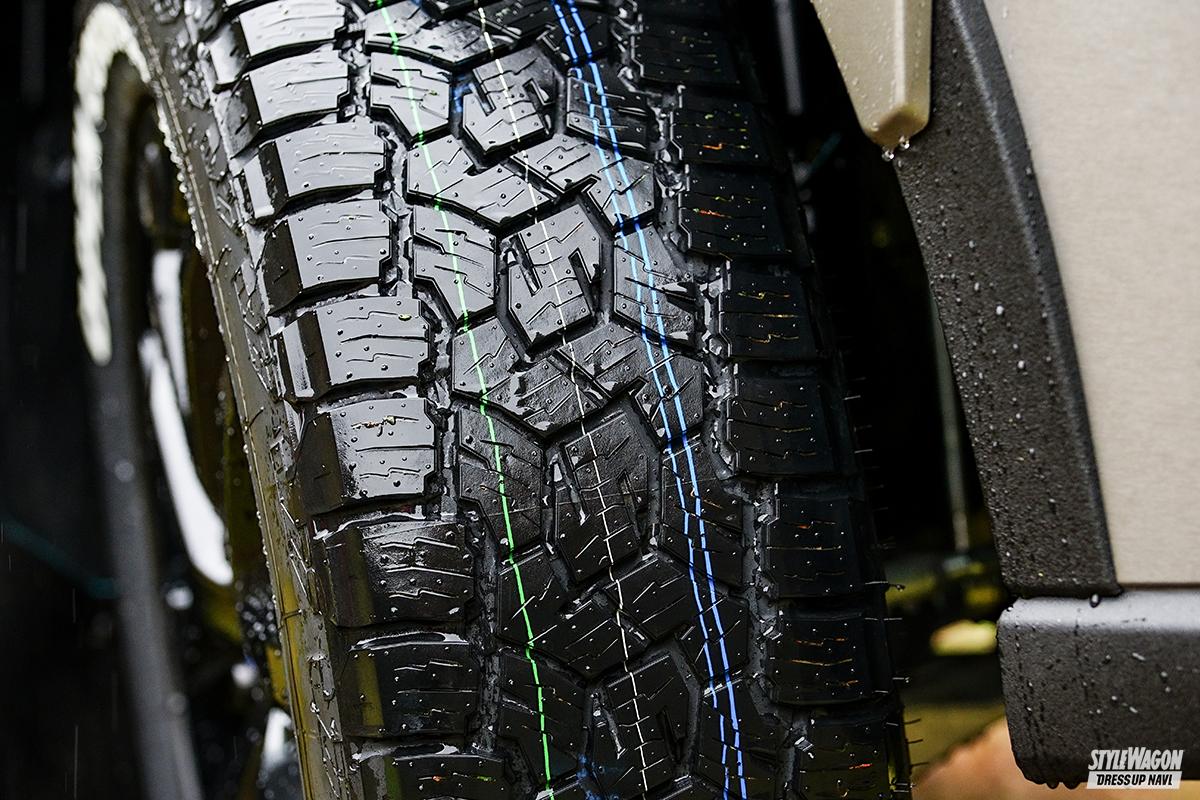オープンカントリーはSUVやオフロード車をターゲットとした、トーヨータイヤの主力ブランド。市街地走行をメインとしたA/T(オールテレーン)とオフロード性能を強化したM/T(マッドテレーン)、そして両者の良さをいいとこ取りしたR/T(ラギッドテレーン)と豊富なバリエーションを取り揃えている。今回紹介するA/TⅢは北米で先行発売して多くのユーザーから高い評判を得たことから、日本でも販売を開始。そして昨年からカスタマイズで人気のホワイトレター仕様も追加され、オフロードタイヤとしての魅力を高めた。