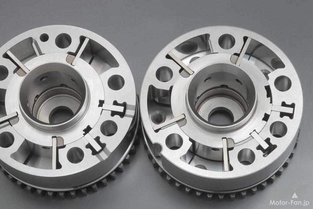 要は回転運動を行なうアクチュエーターといえばモーターなのだが、カムスプロケット部分に収まる大きさ(体格)で、前述のようなカムシャフトを回転させるための高トルクを生み出すためには、モーター単体では不可能であり、高倍率のトルク増幅が必要だったのだ。それもカムスプロケット部に収まるという寸法的制約の中でだ。