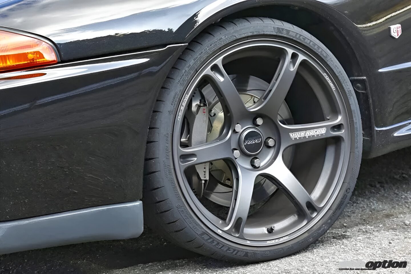 足元には、高強度&超軽量を誇る鍛造1ピースモデルの最高峰“ボルクレーシングTE037 6061(9.5J×19)”と、上質なミシュランパイロットスポーツ(255/30-19)をインストール。車体作りひとつひとつに現代の最高レベルを投入することで、BNR32を進化させているだ。