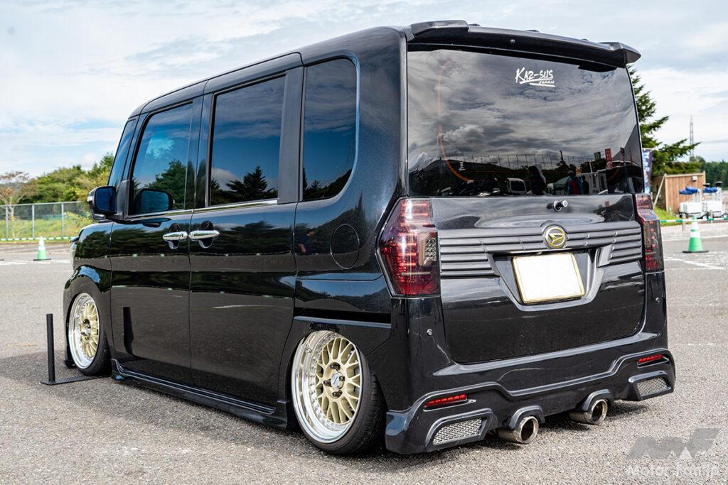 保育士まーちゃんの通勤車はMIXエアロとエアサスを組み込んだガチのドレスアップ仕様で、親御さん達はともかくキッズ達に持てはやされそうな仕上がり具合。にわかに女性がオーナーとは信じられない厳つい雰囲気もポイントとのこと。これまでは生アシにこだわった車高調で行きたいところへも行けない日々だったところ、思い切ってワンオフ製作したエアサスに組み替えたら楽チンすぎて目からウロコ状態なのだとか。今後も内装を筆頭にオーディオやブレーキにも手を掛けるそうで、どエライ通勤車が盛岡の地に爆誕しちゃいそうです!!