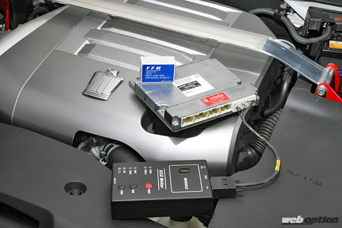スピードリミッターの解除に加え、燃調や点火時期の変更はオリジナルのフルコンECUモジュールにて行う。国内外問わずのハイエンドモデルを手がけてきたアイコードだけに、ECUチューンの信頼性も折り紙付きだ。