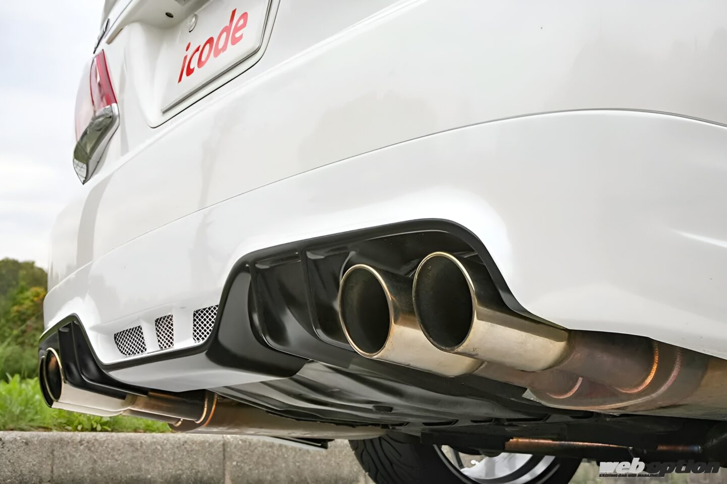 排気系は、90φ左右デュアル出しを採用したオールステンレス製マフラーと、セル数150のメタル触媒が組み込まれた中間パイプにより排気効率を高める。もちろん車検対応のシステムだ。