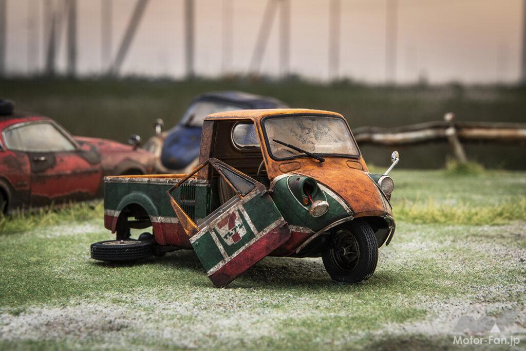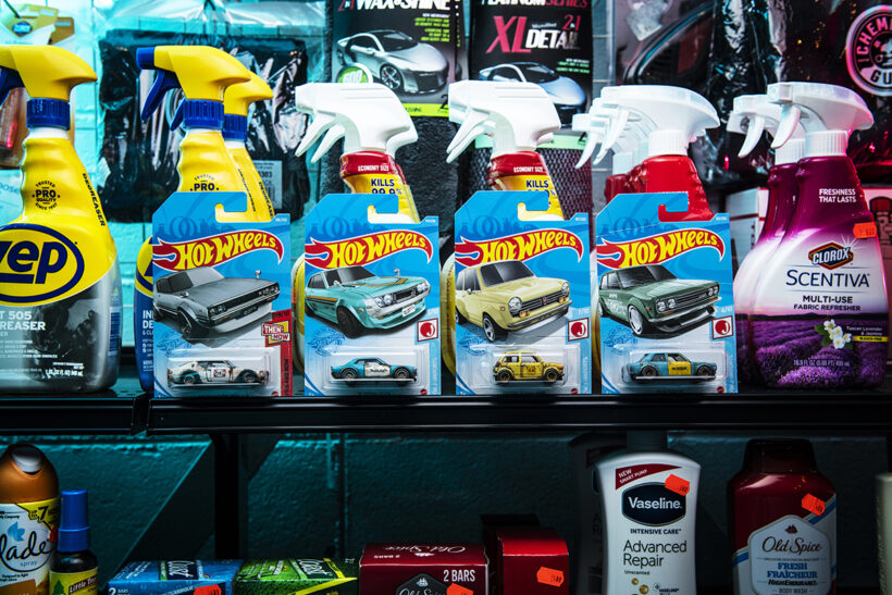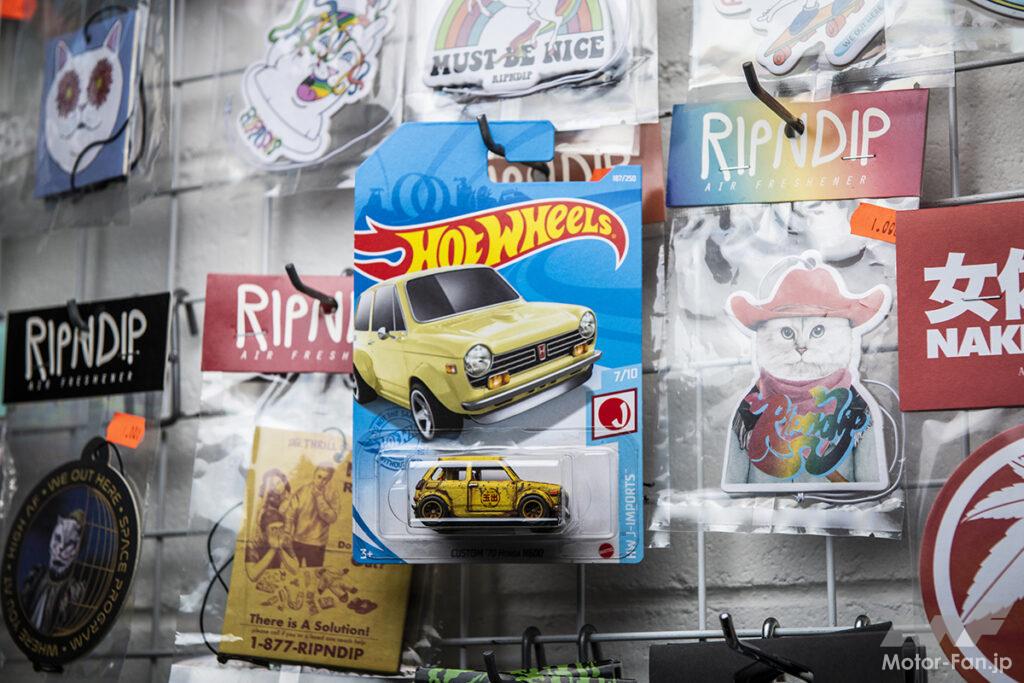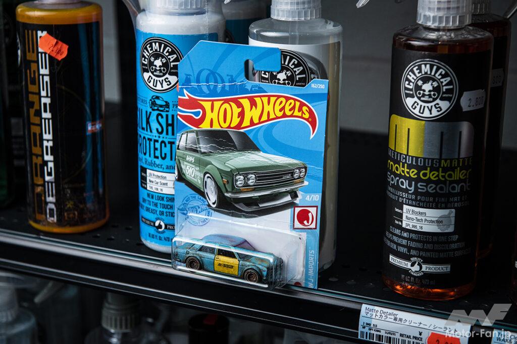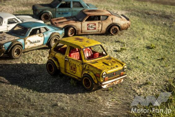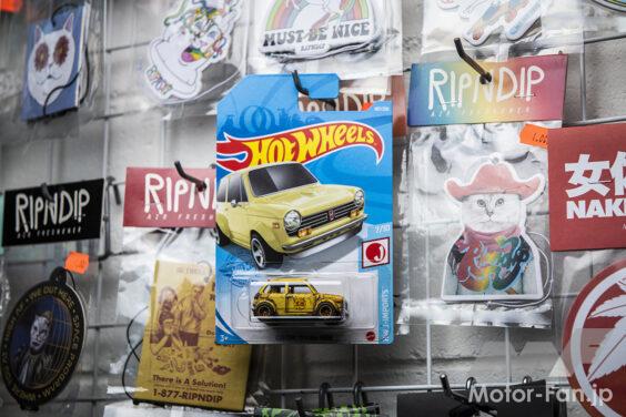 新品同様、綺麗にパッケージに収まってますが、どう見てもパッケージのイラストと本体の雰囲気が違います。不良品か? と思いきや、実は、ていねいにパッケージを開けて、実車を分解。PAPAN部長お得意の企業カラー&ロゴアレンジと、放置車両風加工を施して、元に戻しているのです。コレクターズアイテムとしても人気のホットウィール。パッケージに入ったまま飾っている人も多いかと思いますが、こんな風に手を加えたミニカーをしれっと飾っていたらお洒落ですよね〜。これまでのプラモデルは1/24スケールですが、ホットウィールは1/64スケール。この細かさはスゴい! 次回はその手法を紹介します!