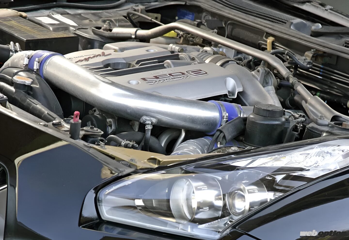 エンジンルームにはVE38DETT…ではなく、R34のRB25DETが鎮座する。エンジンチューンは吸排気程度のライトスペックだ。ミッションがオートマのため、いずれはMT化することを考えている。